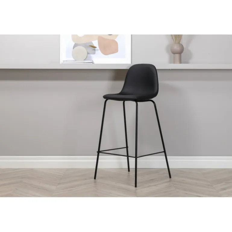 Skab et moderne blikfang, der giver en luksuriøs følelse i hjemmet med barstole fra Polar-serien! Designet er gennemtænkt med en fuldt polstret, elegant stol med en rund ryg og sæde i polstret polyurethanmembran og polyester samt en smal benramme i sort jern med integreret fodstøtte for ekstra komfort. Lettere montering kræves. Plejeråd: PU er godt at rengøre med en blød, fugtet bomuldsklud. Ved svære pletter kan en fugtet bomuldsklud og et middel beregnet til rengøring af bycast og PU bruges først på et ikke-synligt område, da nogle midler kan have forskellige sammensætninger.