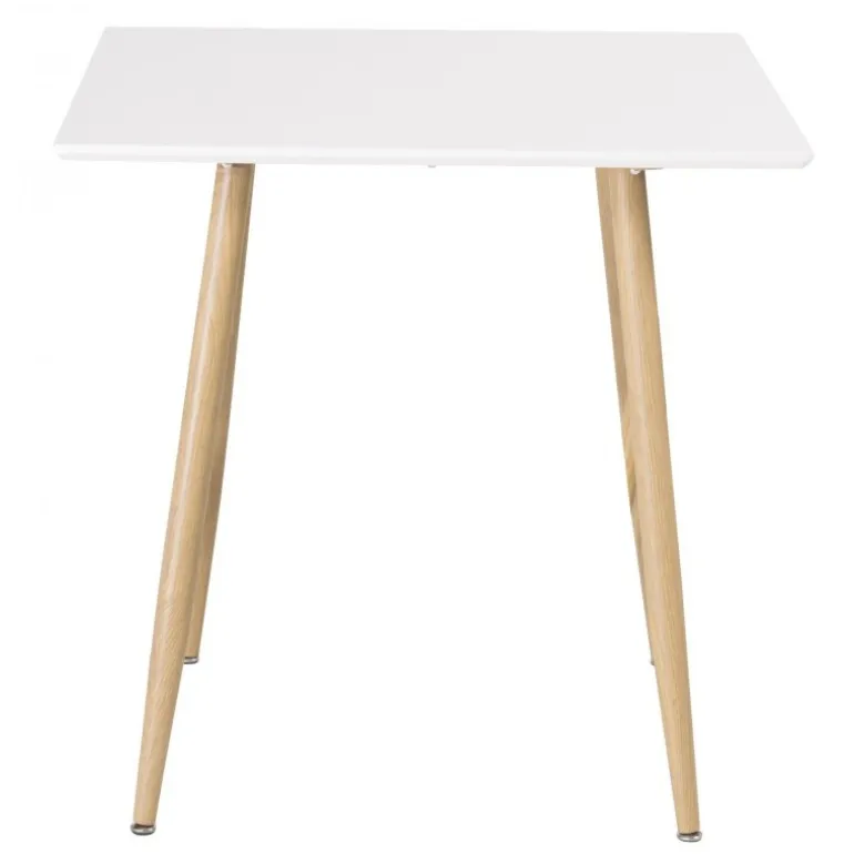 Skab et charmerende midtpunkt i hjemmets hjerte! Dette firkantede spisebord fra Polar-serien er perfekt til det lille køkken! Designet er skandinavisk med en bordplade i hvid MDF og bordben i naturfarvet metal. Indret dig for en indbydende og familiær følelse – her er det behageligt at sidde! Plejeråd: MDF-plader, der er malet eller lakeret, er følsomme over for ridser og skader. Vær derfor forsigtig med pladerne for at undgå dette. Overflader malet med lak med farvepigment eller maling har en pigmentering, der giver en ikke-dækkende transparent overflade. Sørg for at fugte og fjerne pletter så hurtigt som muligt med en godt opvredet rengøringsklud og rengøringsmiddel.