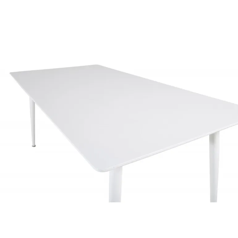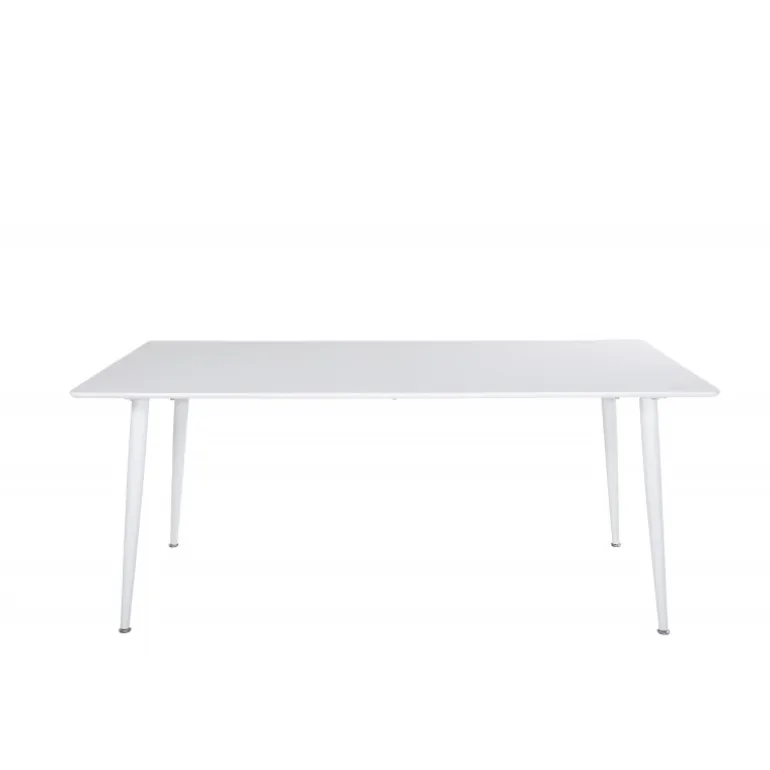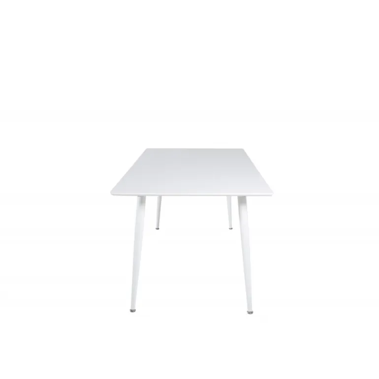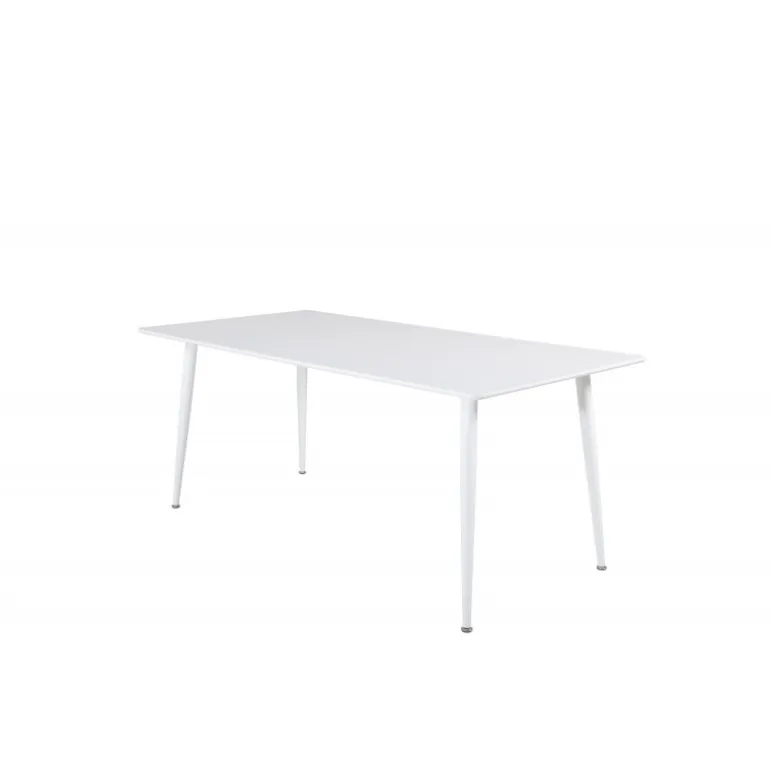 Et stilfuldt spisebord fra Polar-serien, der aldrig går af mode! Spisebordet har en bordplade i MDF og let udstillede ben i metal. Farven er gennemgående hvid, hvilket giver et let og friskt præg til rummet, hvor det står. Det skandinaviske design skaber en moderne blikfang og er nemt at matche med andre interiører. Inviter til dejlige middage fremover! Plejeråd: MDF-plader, der er malet eller lakeret, er følsomme over for ridser og skader. Vær derfor forsigtig med pladerne for at undgå dette. Overflader malet med lak med farvepigment eller maling har en pigmentering, der giver en ikke-dækkende gennemsigtig overflade. Sørg for at tørre fugt af og fjern pletter så hurtigt som muligt med en godt vredet rengøringsklud og sæbevand.