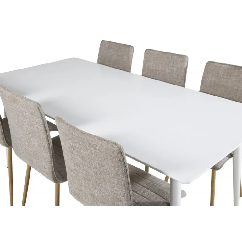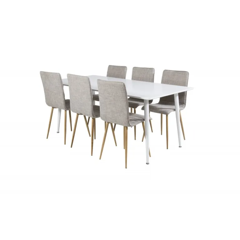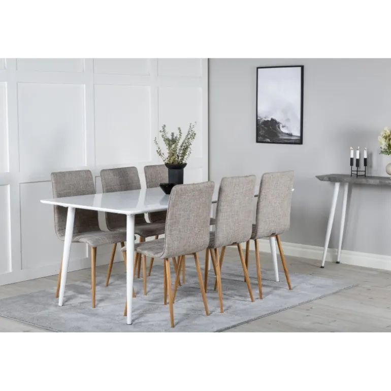 Stilfuldt og løftende Spisebordssæt i et let design! Her kombinerer vi vores spisebord Polar med vores siddevenlige spisebordsstole Windu. Lad hjemmets hjerte blive præget af din nye iøjnefaldende Spisebordssæt. Perfekt til både hverdag og festlige lejligheder, og det moderne design passer ind i ethvert hjem. Polar Rektangulær Spisebordssæt tilbyder både komfort og elegance, hvilket gør det til det ideelle valg for enhver spisestue.