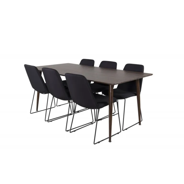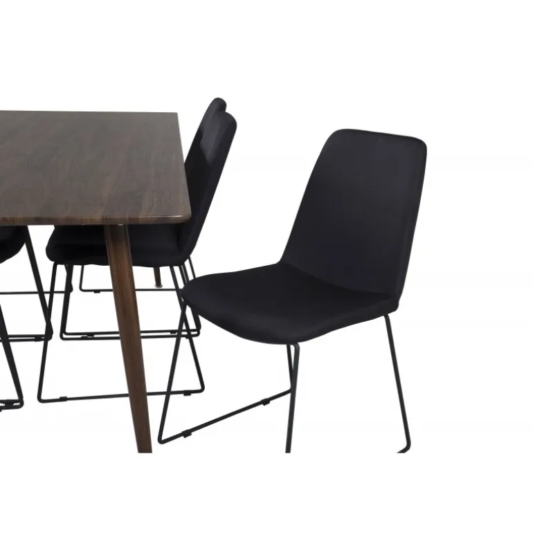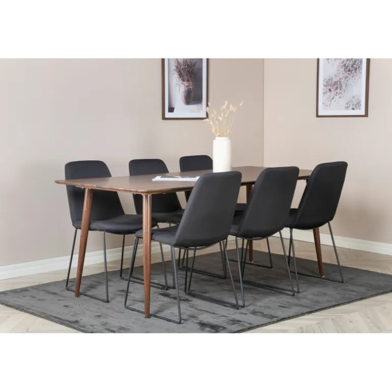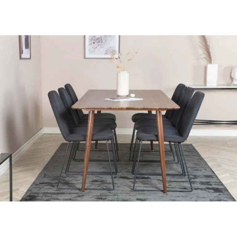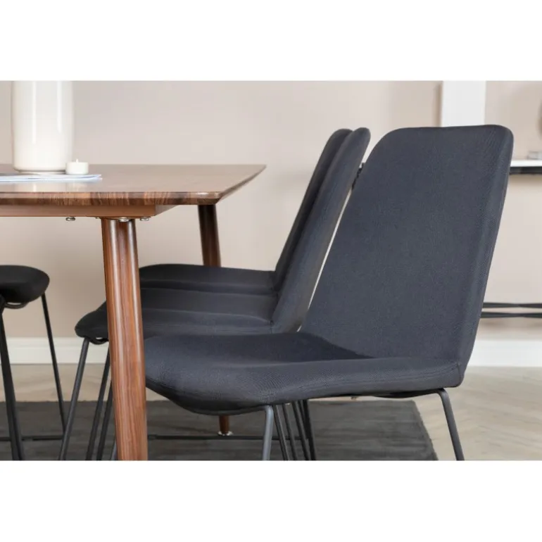 - Farvevalg: Bord i valnød og stole i sort for en elegant kombination.