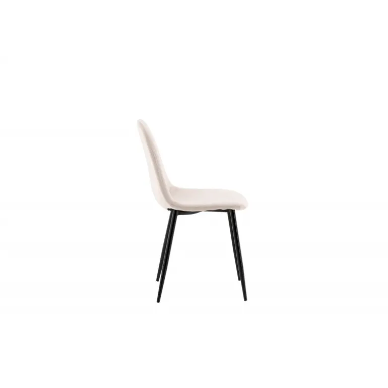 En moderne stol fra serien Polar i en stilfuld beige farve! Denne spisebordsstol, fuldt udklædt med en let afrundet ryg og sæde i velourstof, og ben i sort pulverlakeret metal, er lige så komfortabel som den er iøjnefaldende. Indret hjemmets hjerte indbydende og hyggeligt og nyd dejlige måltider sammen! Lettere montering kræves. Plejeråd: Brug tekstilspray til at imprægnere stoffet, før du begynder at bruge det; det gør også snavs og pletter lettere at fjerne i fremtiden. Fjern pletter med det samme, gnid ikke men forsøg at suge op forsigtigt med en klud. Hvis pletterne ikke forsvinder, prøv en pletfjerner, som du først har testet på en mindre synlig del af stoffet.