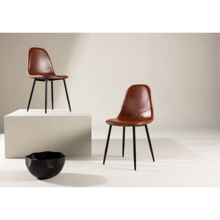 En moderne drøm af en stol fra Polar-serien i klassisk brun kunstlæder med blød polstring! Denne spisebordsstol i et fuldt polstret design med en let afrundet ryg og ben i sort pulverlakeret metal er både komfortabel og iøjnefaldende. Indret hjemmets hjerte indbydende og nyd dejlige måltider sammen! Nogle samling kræves. Plejeinstruktioner: Kunstlæder kan rengøres med en blød fugtig bomuldsklud. For hårde pletter, brug en fugtig bomuldsklud og en rengøringsmiddel beregnet til rengøring af ByCast & PU; test først på et ikke-synligt område, da nogle midler kan have forskellige sammensætninger.
