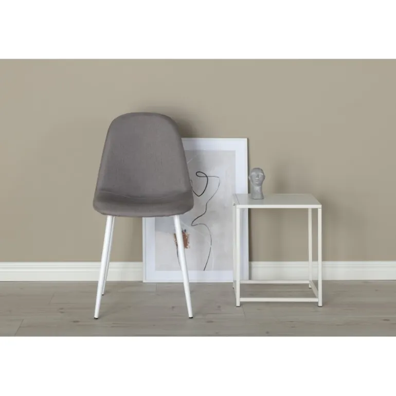 Polar Stol er en praktisk spisebordsstol i al sin enkelhed – lige så komfortabel som den er handy! Polar har et fuldt beklædt design med ben i hvid pulverlakeret metal og med en let afrundet ryg og sæde i gråt polstret polyesterstof. Match med et lækkert spisebord og nyd hyggelige måltider fremover! Let montering kræves. Plejeråd: Brug tekstilspray til at imprægnere tekstilet før brug, hvilket også gør det nemmere at fjerne snavs og pletter i fremtiden. Fjern pletter med det samme, gnid ikke, men forsøg at suge forsigtigt op med en klud.