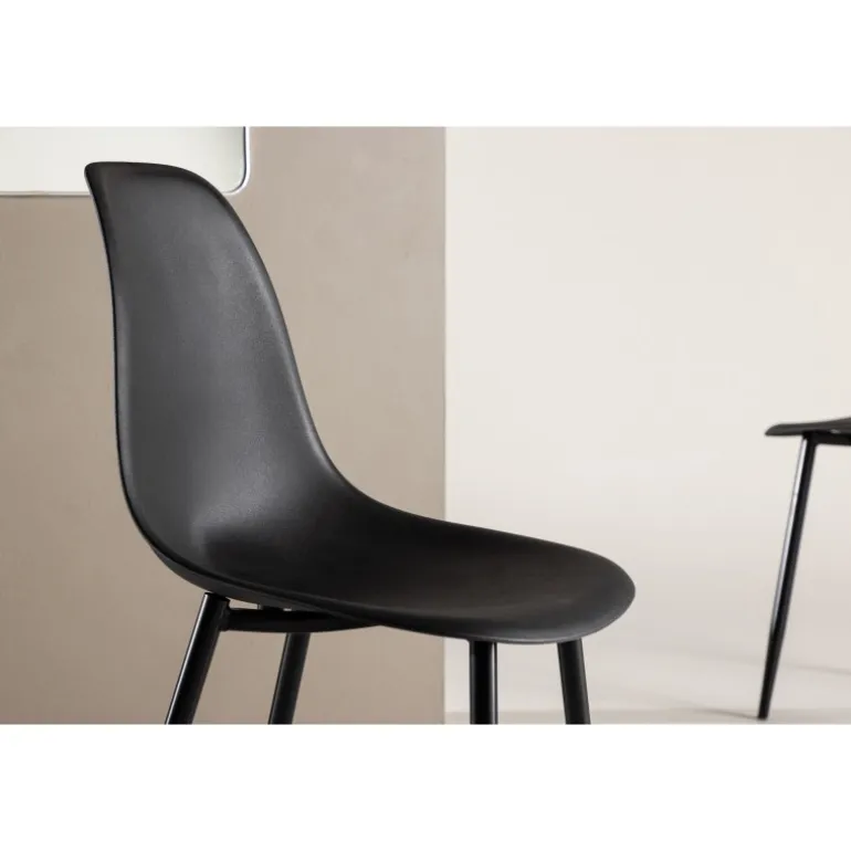 Spisebordsstolen i Polar-serien er både praktisk og holdbar! Med ben i sort pulverlakeret metal og en skålformet, rundet ryg og sæde i sort fuldstøbt plast er denne spisebordsstol let at holde ren og frisk. Suppler med et hyggeligt spisebord og nyd behagelige måltider! Lettere samling kræves. Plejeråd: Plast er et taknemmeligt materiale at tørre af og rengøre. Brug en fugtig klud og et mildt rengøringsmiddel til rengøring.