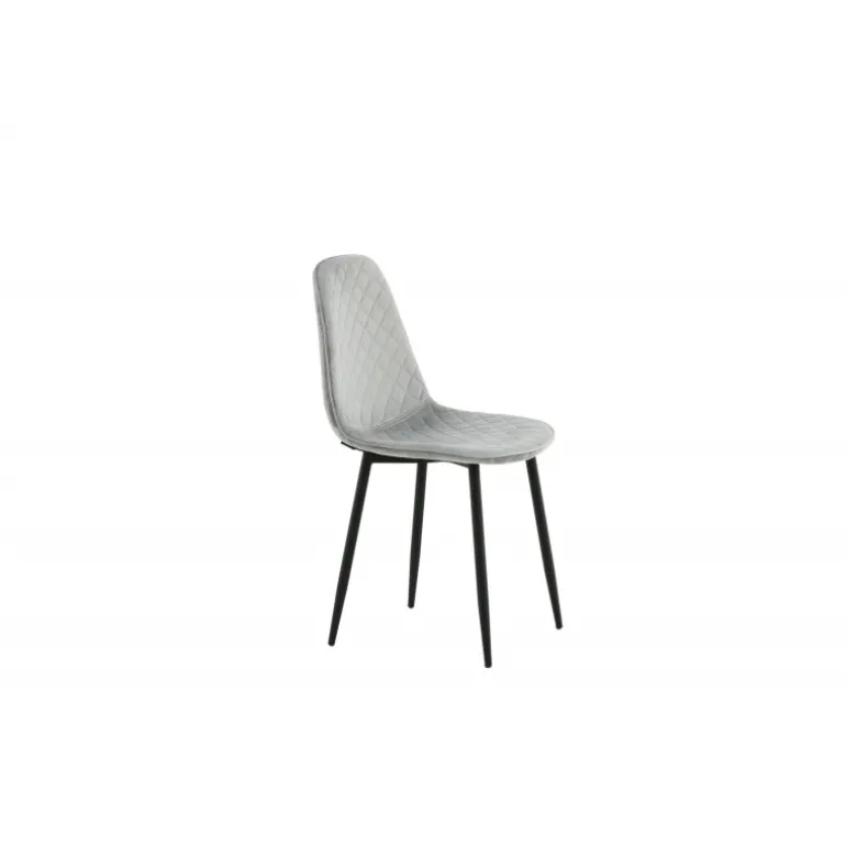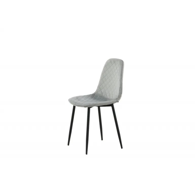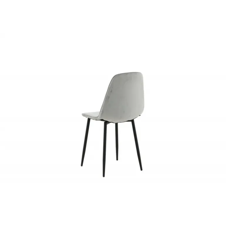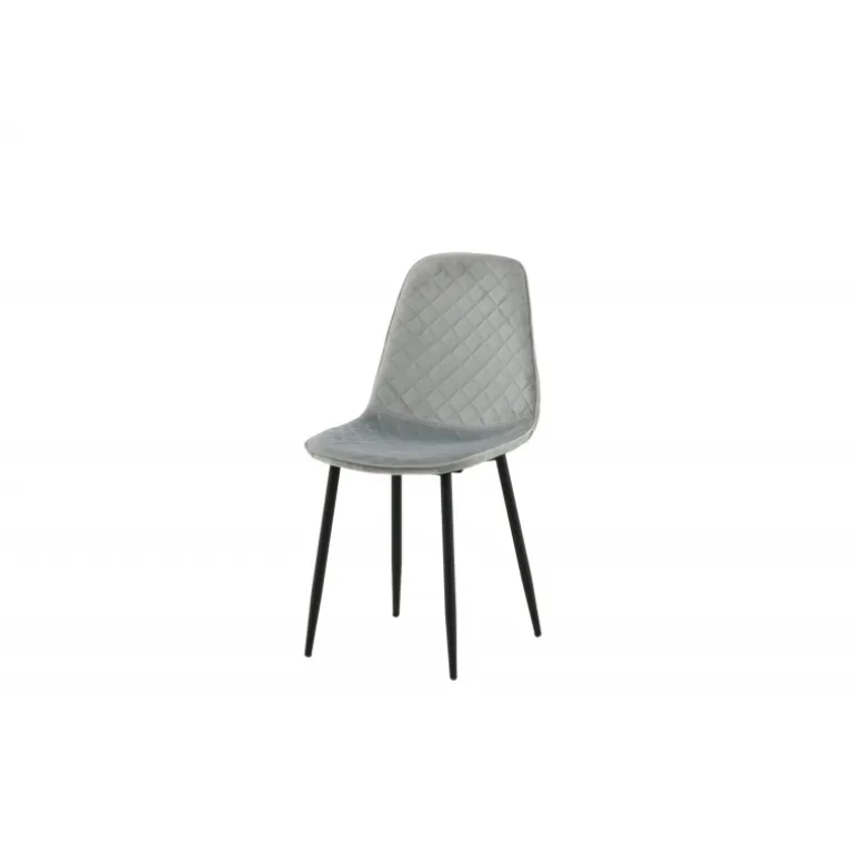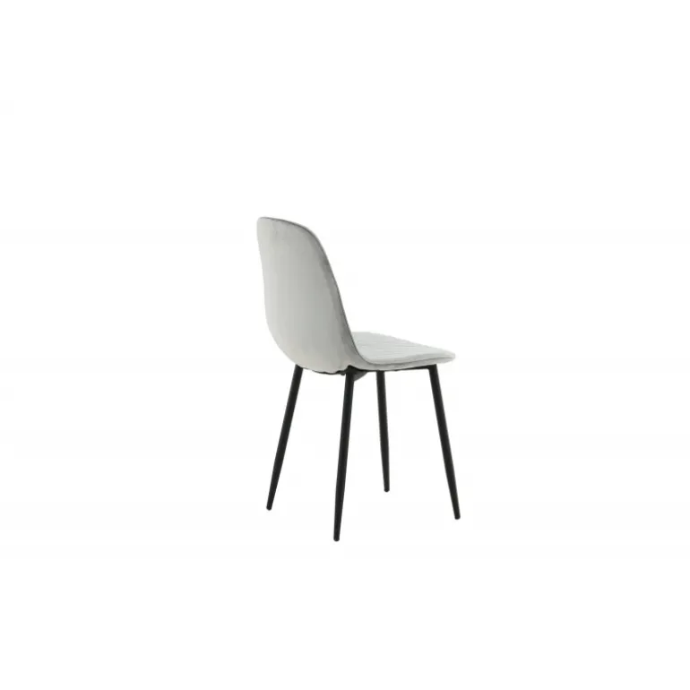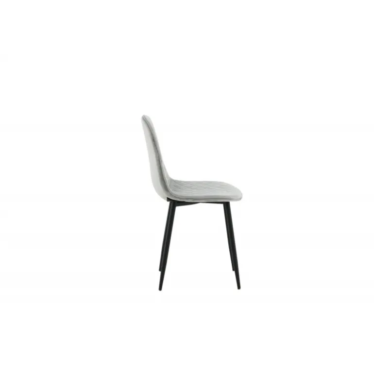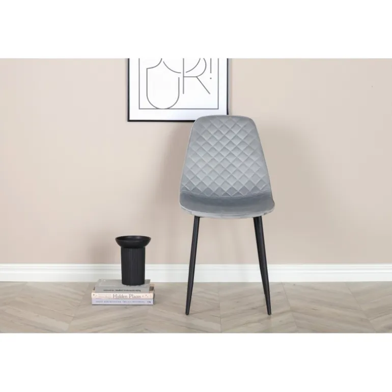 Slank spisestol med enkelt design og stilfulde detaljer! Spisestolen fra Polar-serien har et gennemtænkt design med en let afrundet ryg og sæde i polstret grå fløjlsstof med dekorative sømme på indersiden, der danner et dekorativt ternet mønster. Benene er i sort pulverlakeret metal. Nogle samling kræves. Sid behageligt og skab et moderne fokuspunkt i stuen. Plejevejledning: Fløjl har en tendens til at udvikle indtryk, når luven flader ud. Disse indtryk kan få stoffet til at se slidt ud, hvilket er normalt for denne type materiale. Fjern pletter straks, gnid ikke, men prøv at suge dem forsigtigt op med en klud.