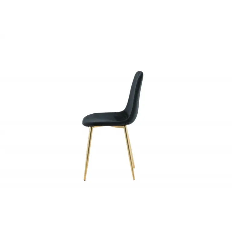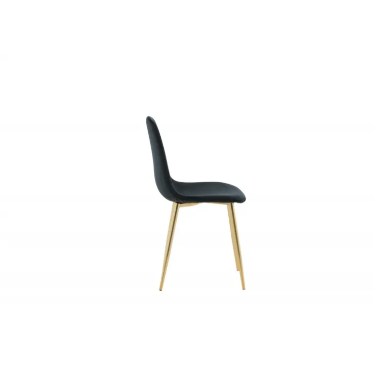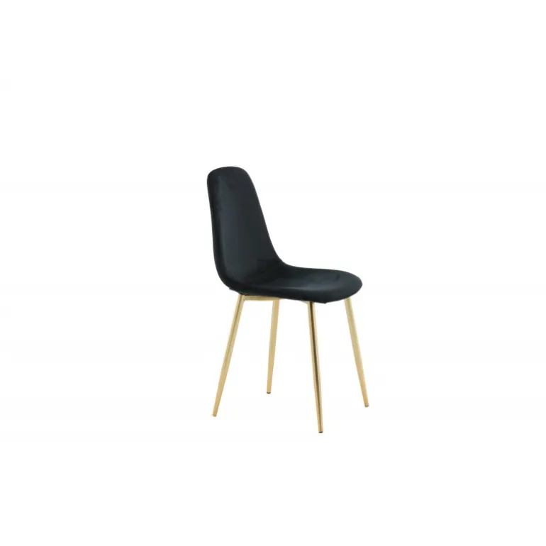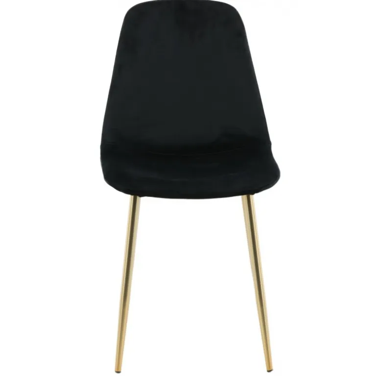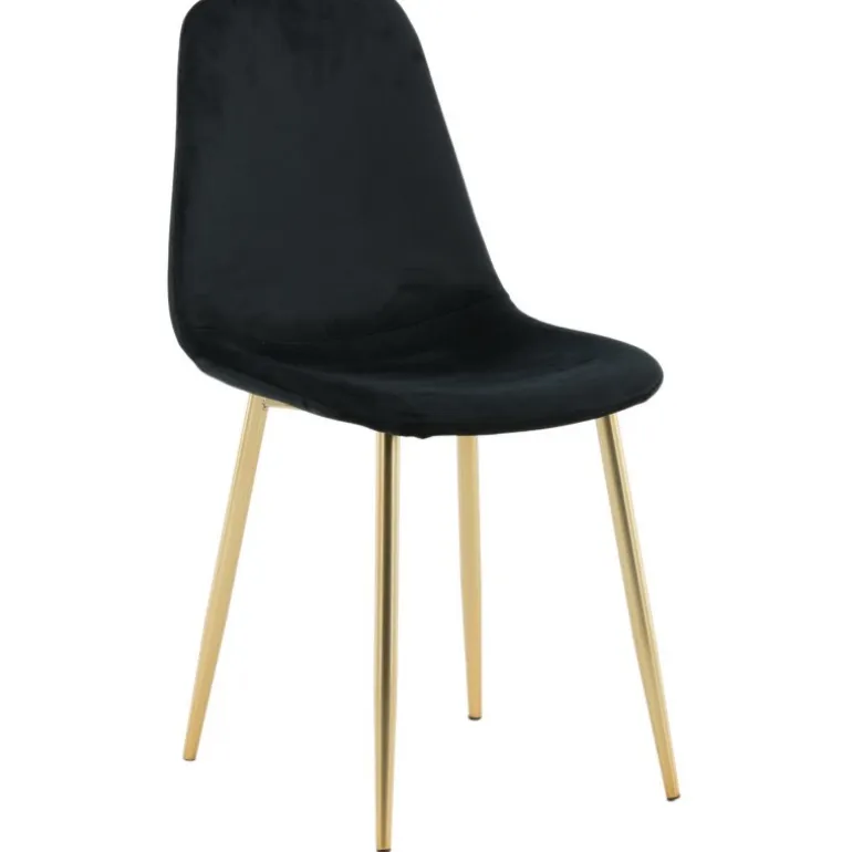 En elegant spisestol med et luksuriøst præg! Polar har et fuldt polstret design med ben i messingbelagt metal, en let rundet ryg og sæde i slankt sort fløjlstof med blød polstring for ekstra komfort. Her behøver du ikke gå på kompromis mellem komfort og design. En smule samling kræves. Plejeinstruktion: Fløjl får ofte aftryk, når luven lægger sig ned. Aftrykkene kan få stoffet til at se slidt ud, hvilket er helt normalt for denne type materiale. Afhængigt af hvordan lyset falder, kan stoffet variere i flere forskellige nuancer.