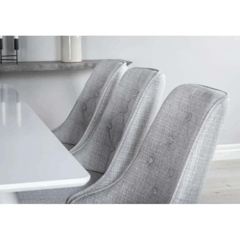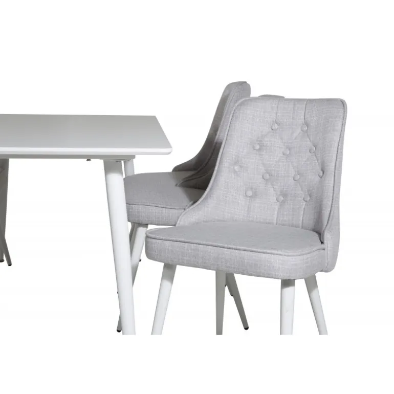 Polar Rektangulært Spisebordssæt kombinerer enkelhed og klassisk design med komfortable og siddevenlige Velvet-stole. Dette elegante Spisebordssæt tilføjer et strejf af luksus til enhver indendørs spisestue. Bordpladen er lavet af robust MDF og stolene er polstret med blødt polyester, hvilket sikrer både stil og holdbarhed. Tilgængelig i hvid og grå for at passe til enhver indretning.