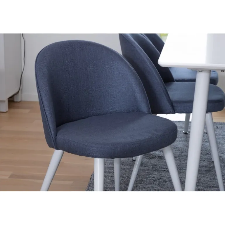 Lad dette smukt matchende madgruppe med et moderne touch blive et naturligt samlingssted i dit hjem. Spisestolene Velvet tilbyder god komfort, og spisebordet Polar sikrer, at der er plads til alle. Uanset om det er en familiemiddag eller en hyggelig aften med venner, vil dette sæt opfylde dine behov og tilføje stil til din spisestue.