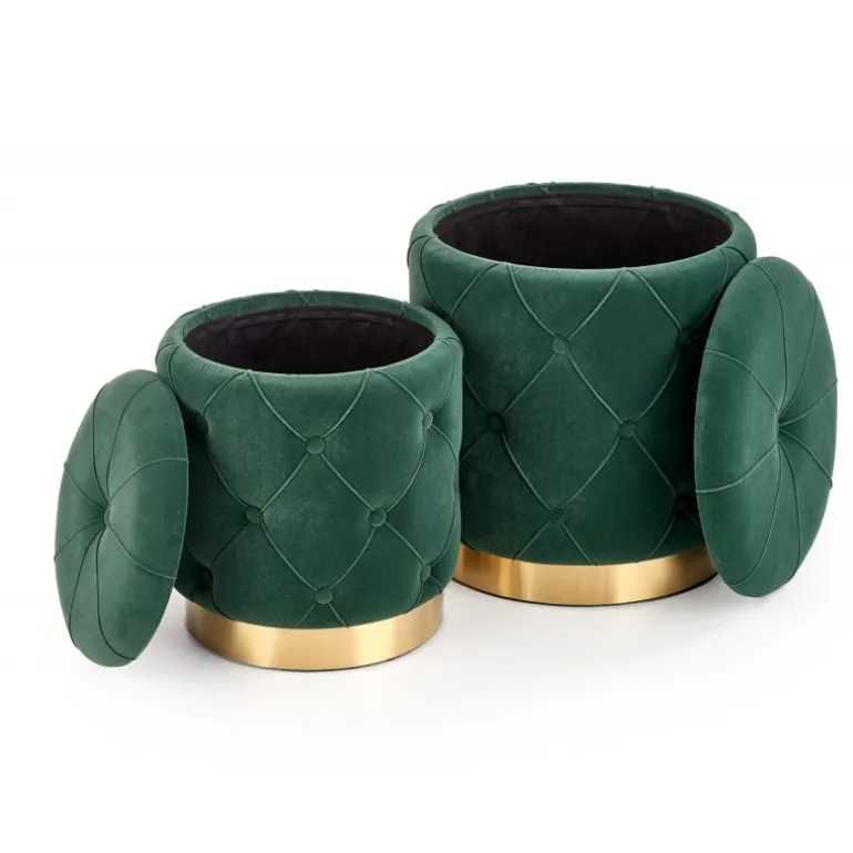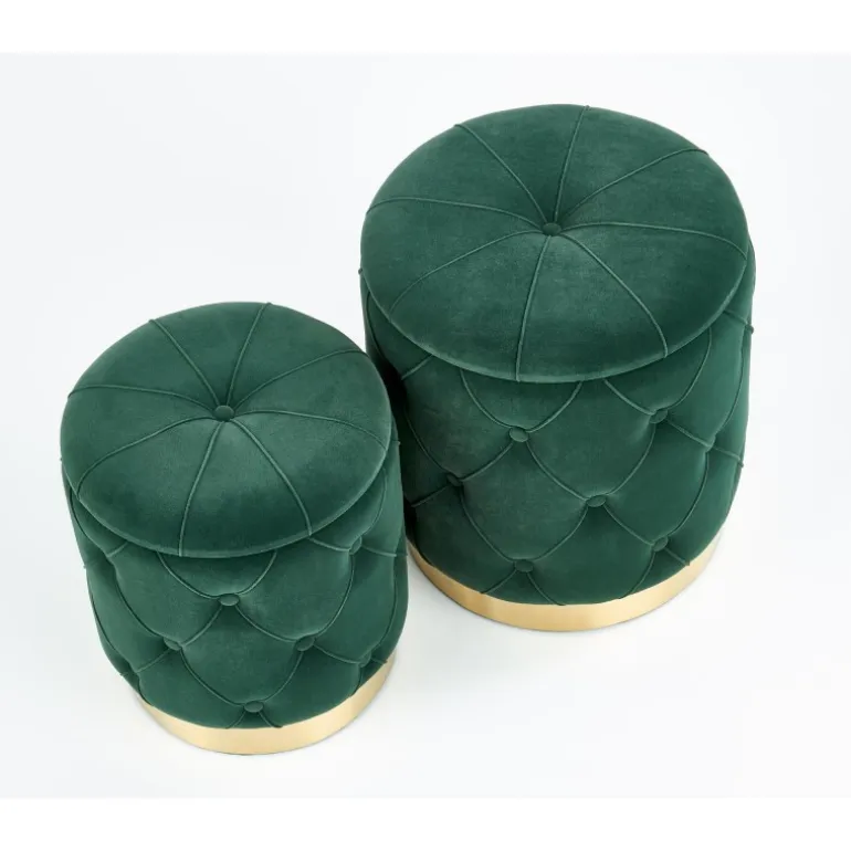 Oplev kombinationen af stil og funktionalitet med POLLY sæt med to skamler i en elegant mørkegrøn farve. Disse skamler er perfekte til både stue og kontor, hvor de tilføjer et strejf af luksus og komfort. Fremstillet af holdbart stof og kromstål, sikrer disse skamler langvarig brug og stabilitet. Med dimensioner på 40/44 og 33/38 cm, kan de let integreres i enhver indretning. Køb POLLY skamler for at forbedre dit hjem med moderne design og praktisk anvendelighed.