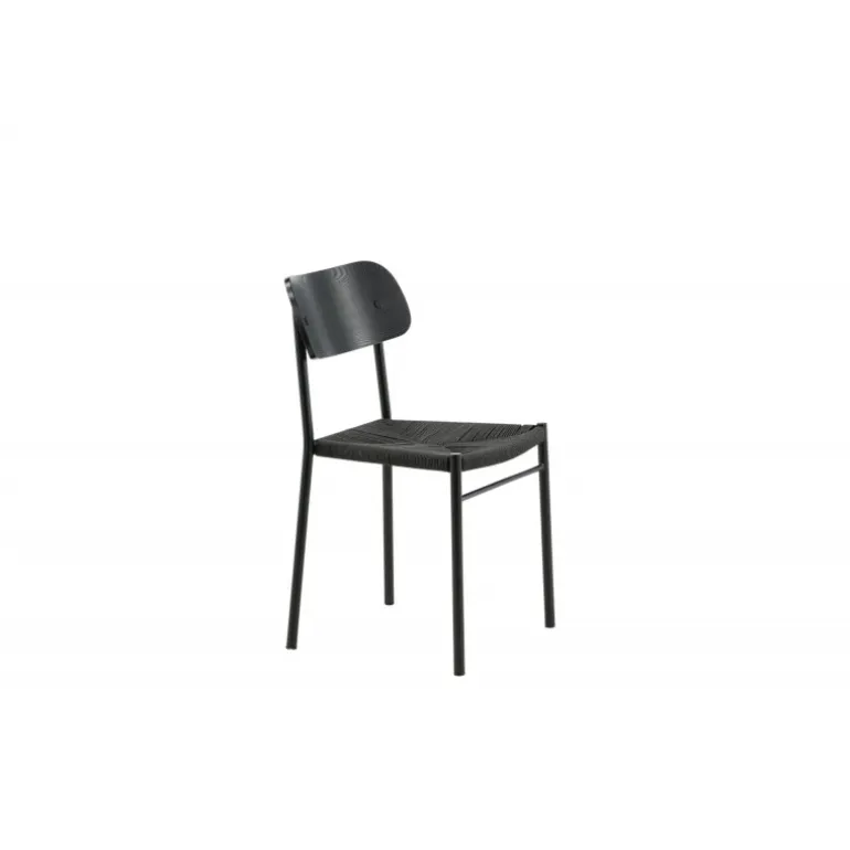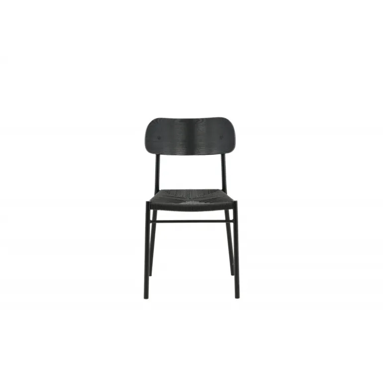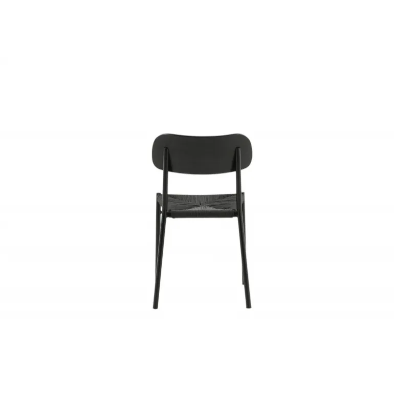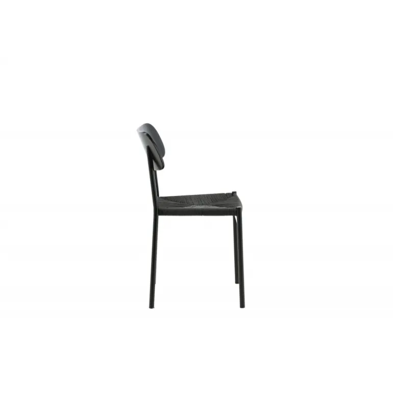 Skab et charmerende centrum i hjemmets hjerte med stilfulde spisebordsstole fra Polly-serien! Det minimalistiske, moderne design har en ryg i sort MDF med finer og sæde i trendy sort naturfiberstof. Stolen har en krop og ben i sort pulverlakeret metal. Lettere montering er påkrævet. Suppler med et matchende bord og nyd hyggelige måltider. Plejeanvisning: Da finer er et levende materiale med naturlig variation i både nuance og åretegning, bliver hvert produkt unikt i sit udseende. Træ modnes over tid, hvilket gør det vigtigt, at alle møblernes overflader udsættes for samme mængde lys for at undgå farveændringer. Ved rengøring af finer, brug en tør klud eller en opløsning af rengøringsmiddel.
