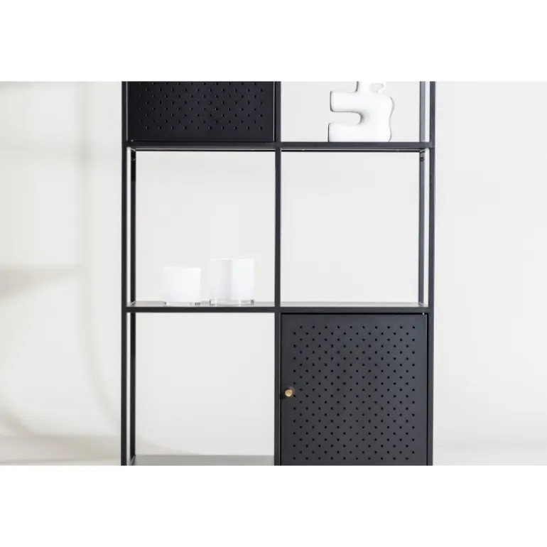 Porto Skuffe er vores fantastiske høje hylde i sort stål og skandinavisk stil! Denne enestående hylde er ikke blot et opbevaringsmøbel, men også en kilde til bekvemmelighed og elegance, der vil løfte din indretning til næste niveau. Med sit høje og smalle design tilbyder denne hylde en unik kombination af åbne og lukkede opbevaringsløsninger på sine fire rummelige hylder. To skabe placeret i forskellige højder med elegante messingfarvede greb giver et perfekt sted at gemme småting og skabe en organiseret overflade. De åbne hylder er designet til at fremvise dine smukke dekorationer eller lysestager, hvilket bringer en følelse af hygge. Denne hylde bliver meget mere end blot opbevaring; det er en mulighed for at forme din indretning med både praktisk og æstetisk fokus. Uanset om du sigter efter moderne minimalisme eller en varm og indbydende atmosfære, vil Porto Skuffe hjælpe dig med at opnå dine mål. Tag inspiration fra vores billeder og lad din kreativitet flyde!