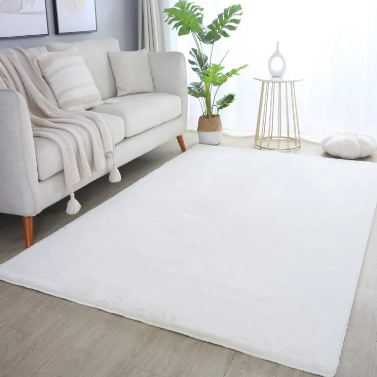 Pouffy Shaggy tæppe Ensfarvet - Creme