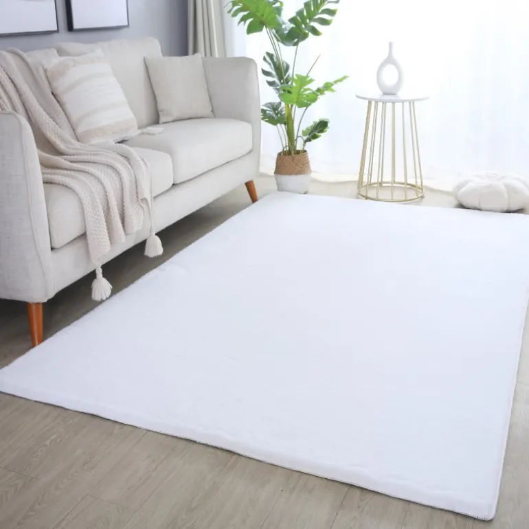 Pouffy Shaggy Tæppeløber Ensfarvet - Hvid