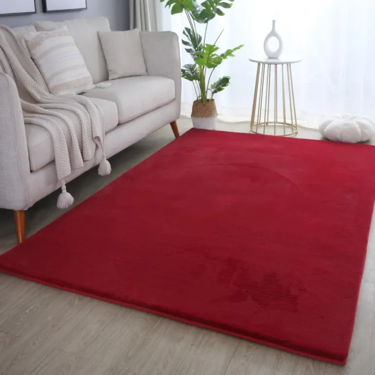 Pouffy Shaggy Tæppeløber Ensfarvet - Rød