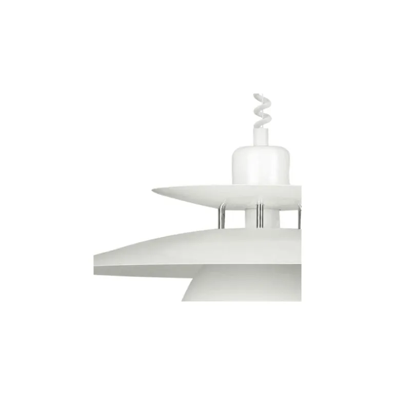 Justerbar pendel i hvid med et klassisk look og på grund af formen på skærmene giver et behageligt lys. Velfungerende over et spisebord da højden let kan justeres så den passer.