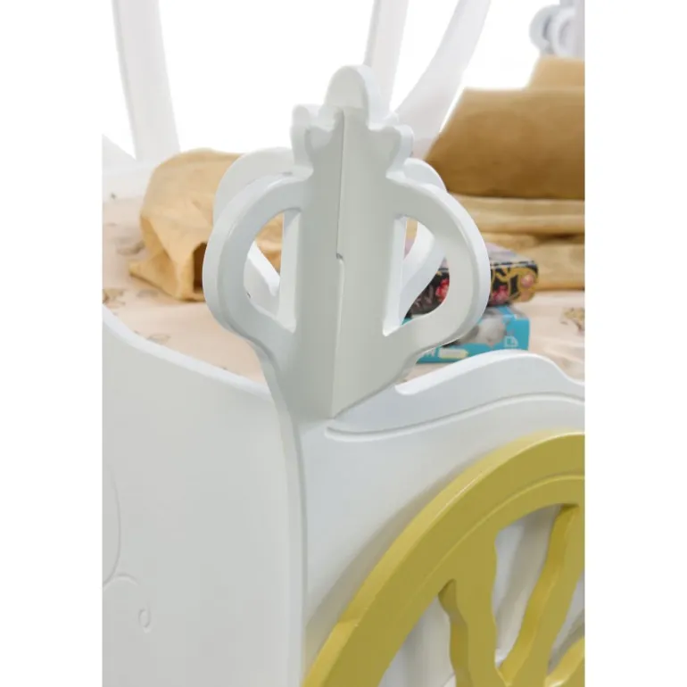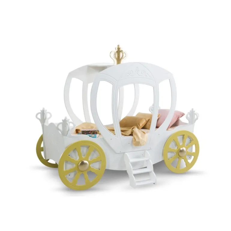 Gør drømmen om et kongeligt eventyr til virkelighed med denne magiske børneseng formet som en prinsessekaret. Med sine fine detaljer og indbyggede LED-lys, skaber sengen en fortryllende atmosfære i børneværelset. Fremstillet i malet MDF, er den både stabil, sikker og nem at vedligeholde.