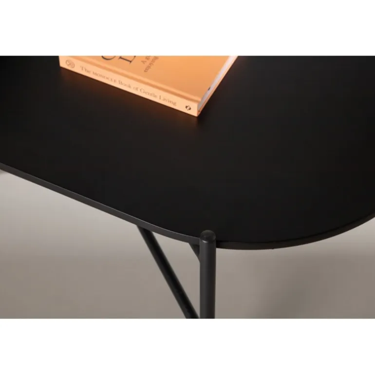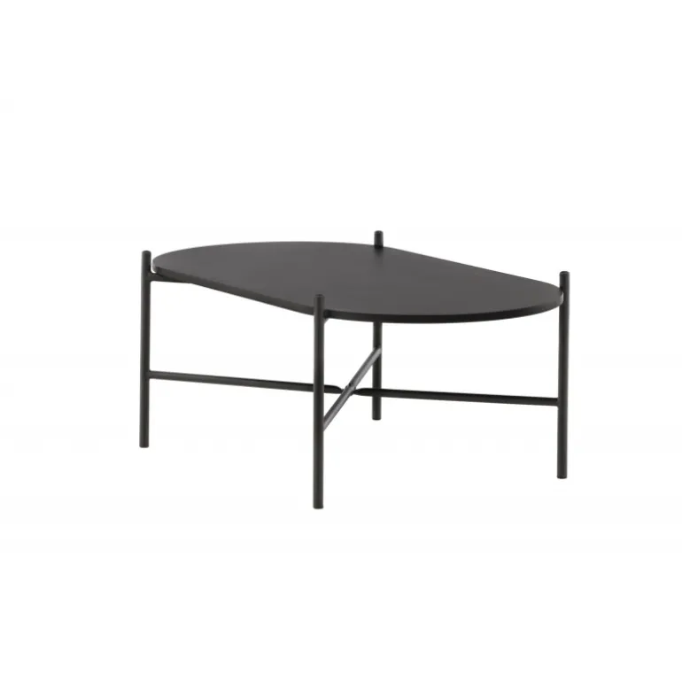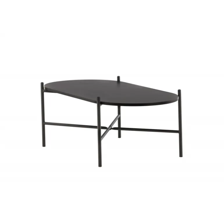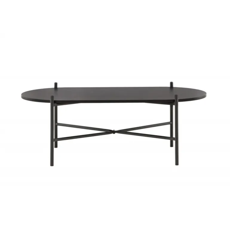 Pueblo sofabord har et iøjnefaldende, skandinavisk design og en generøs størrelse, der gør det perfekt foran den større sofa! Bordet har en oval bordplade i sort MDF og en minimalistisk ramme i sort stål. Bordpladen tilbyder masser af plads til både dekorationer og andre ting, og den luftige udskæring bidrager til en stilfuld atmosfære i rummet. Placer det på det hyggelige tæppe foran sofaen og hæv stilniveauet i hjemmet!