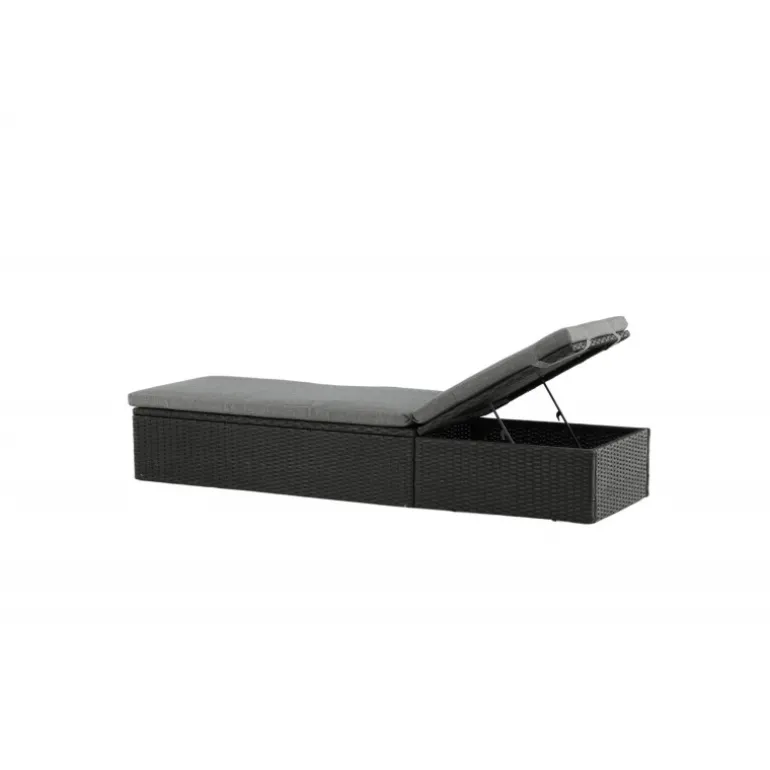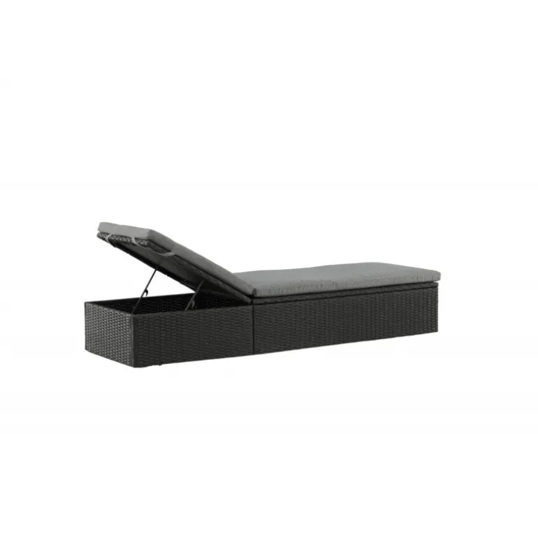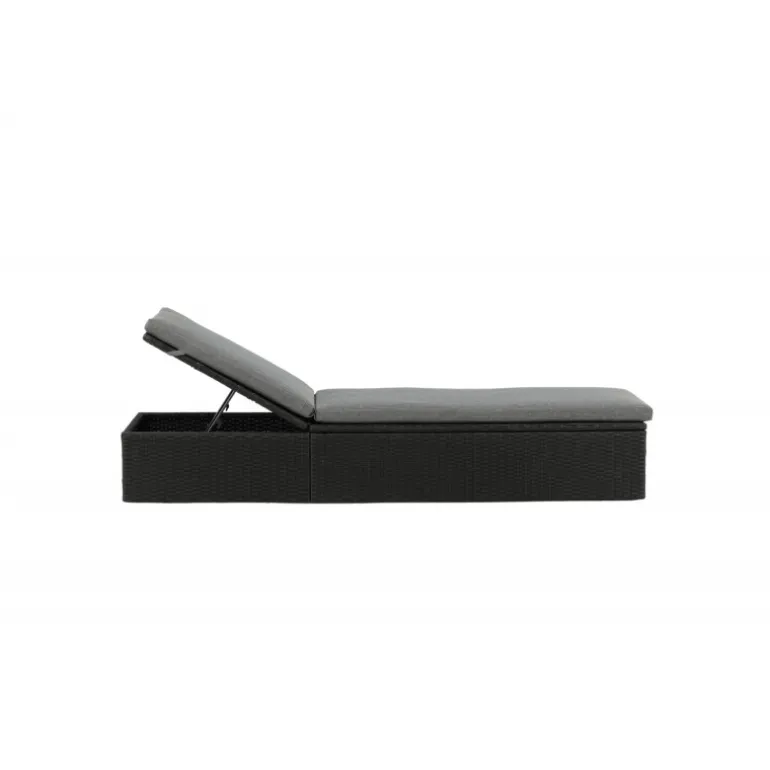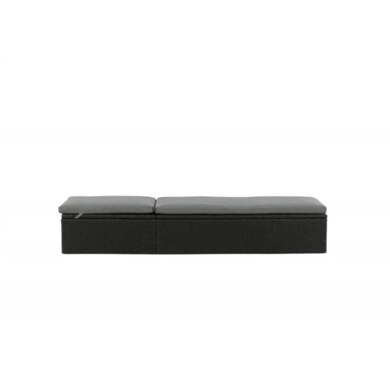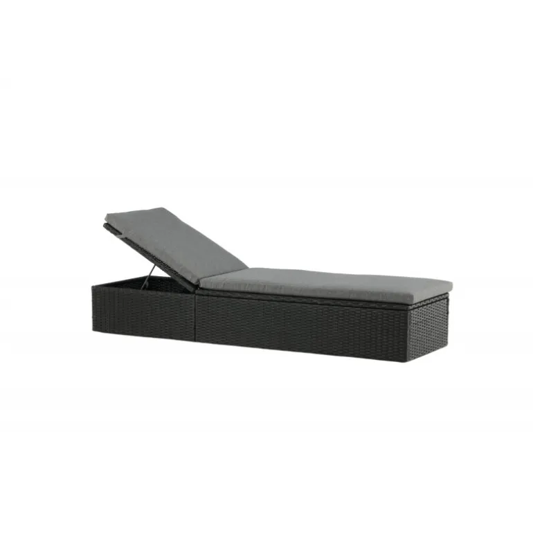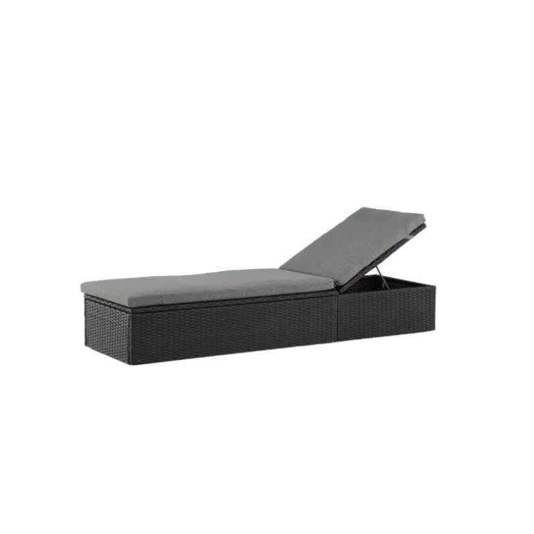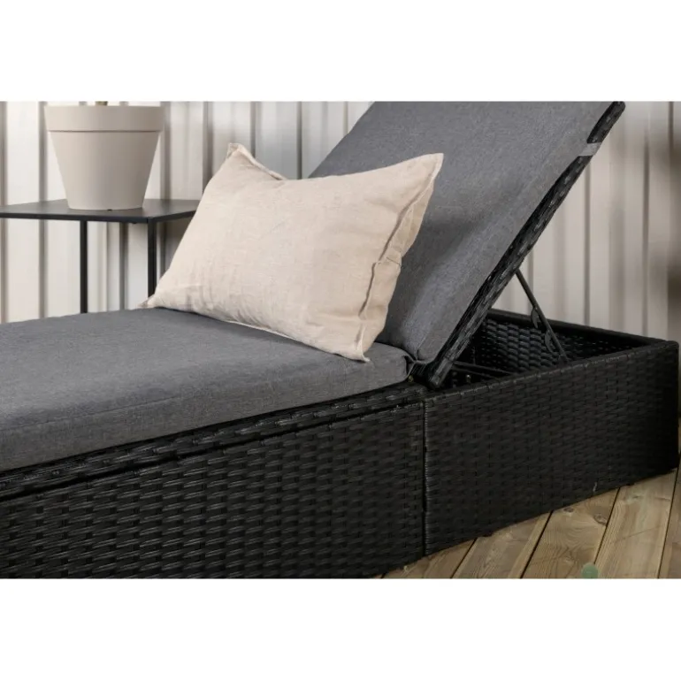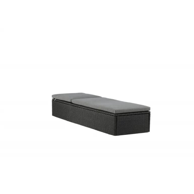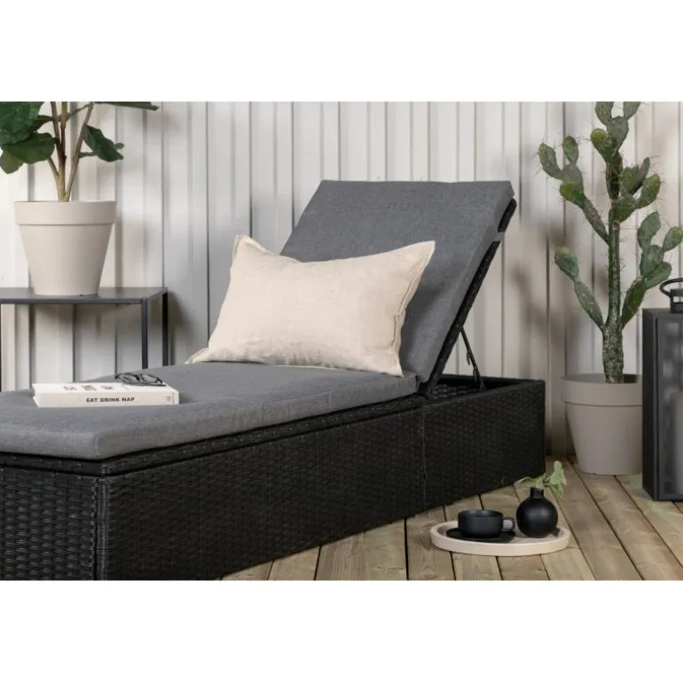 Skab en luksuriøs oase på din terrasse denne sommer med solsengen Quad! Designet er gennemtænkt med et stilfuldt look og praktiske funktioner. Her får du en sort solseng i kunstig rattan med en grå pude og justerbar rygstøtte. Vælg om du vil sidde op og læse en bog eller strække dig ud i hvileposition og nyde solens varme.