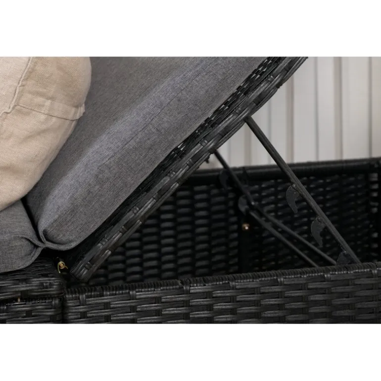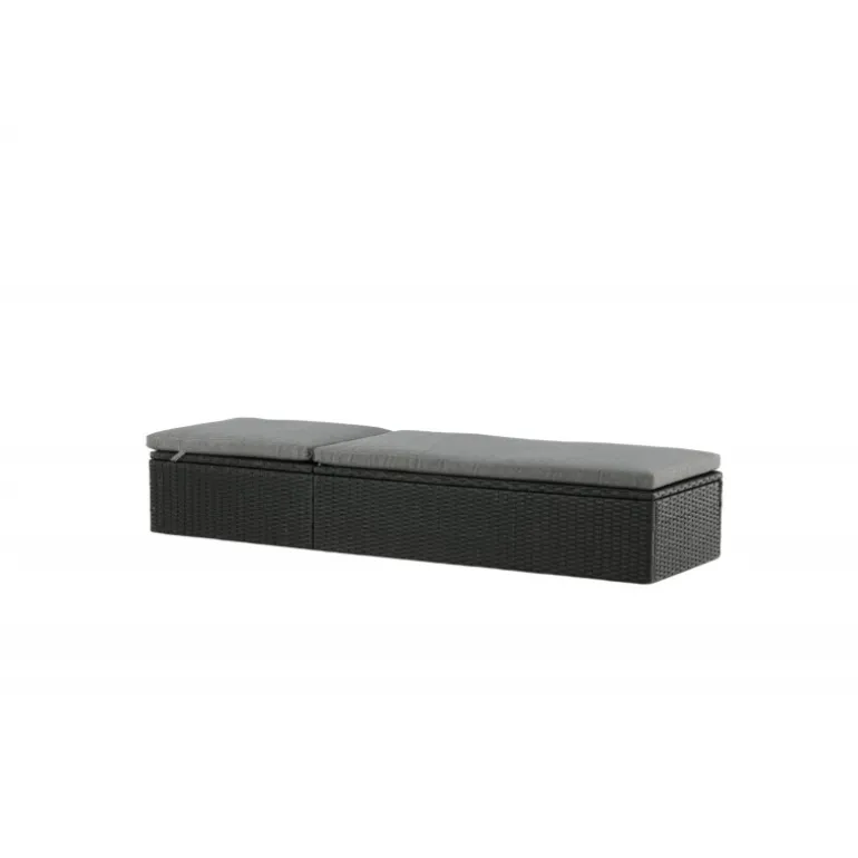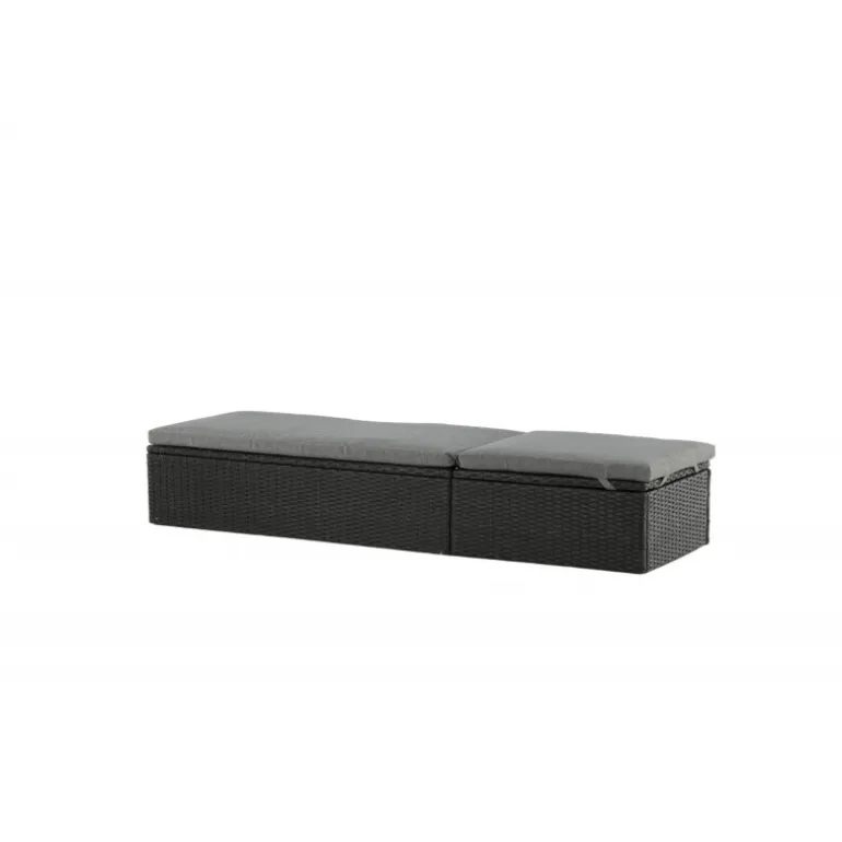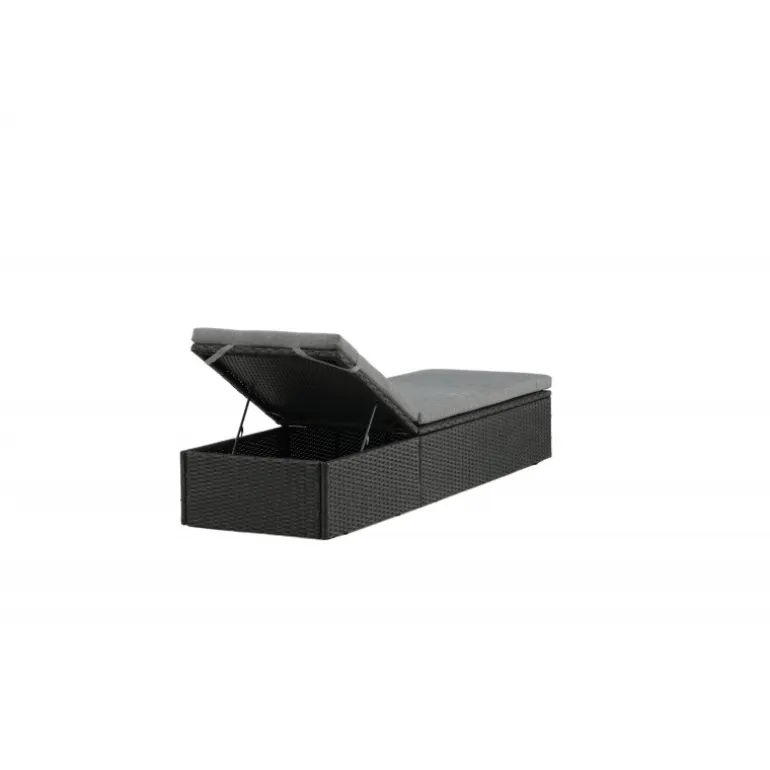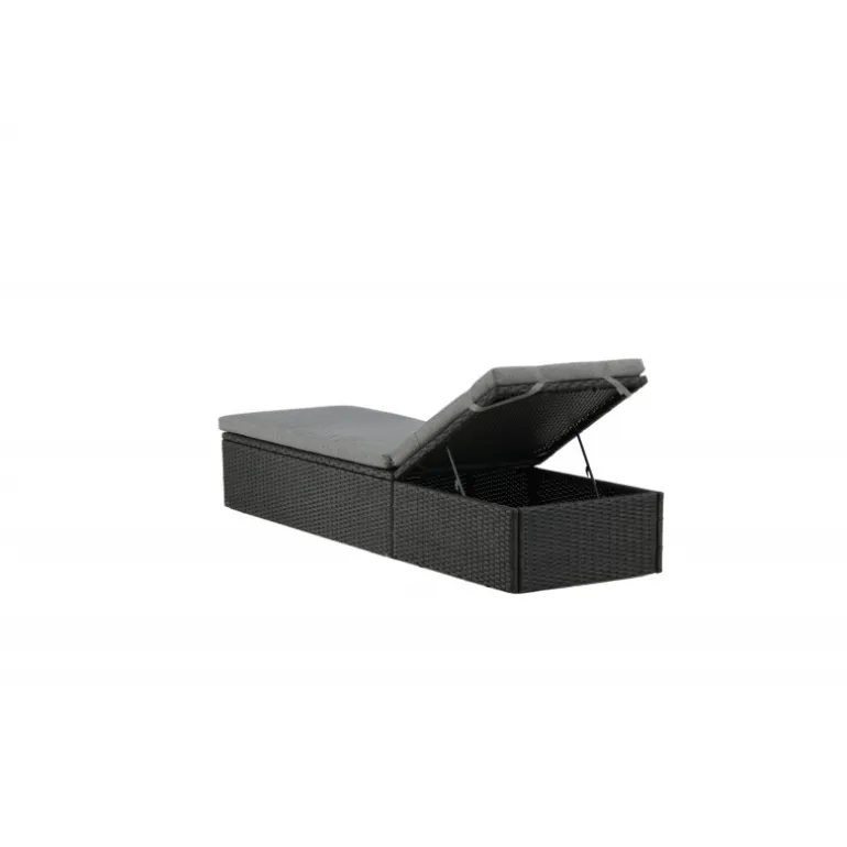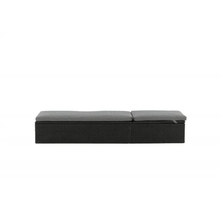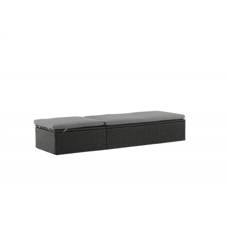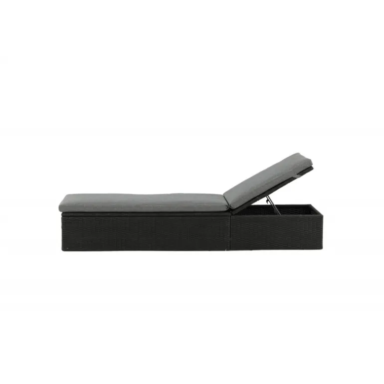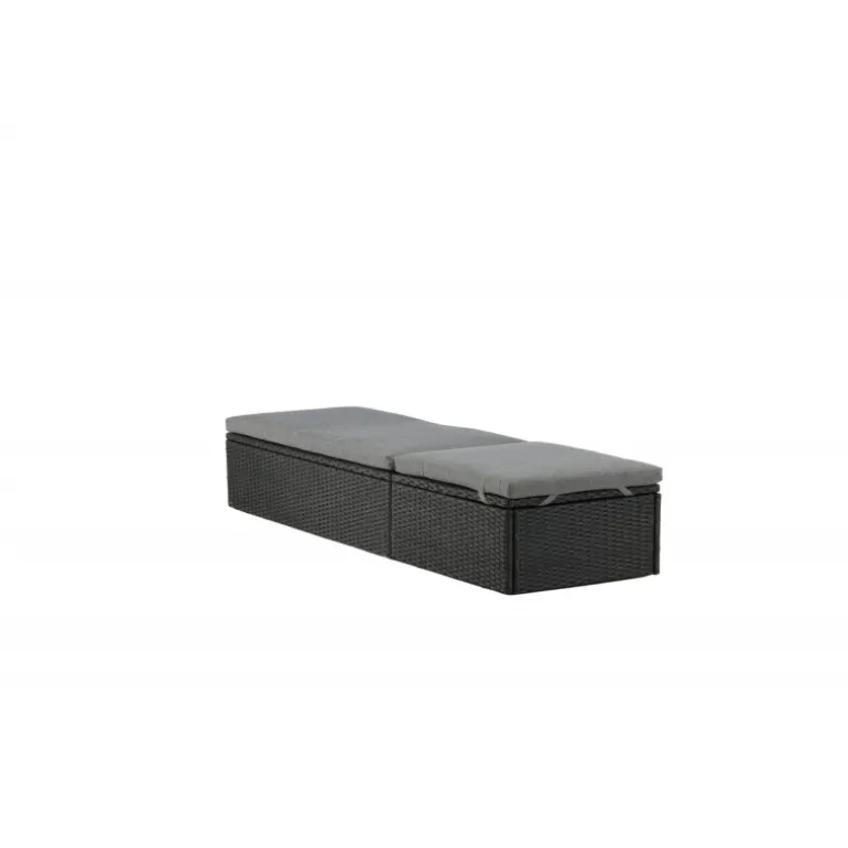 Skab en luksuriøs oase på din terrasse denne sommer med solsengen Quad! Designet er gennemtænkt med et stilfuldt look og praktiske funktioner. Her får du en sort solseng i kunstig rattan med en grå pude og justerbar rygstøtte. Vælg om du vil sidde op og læse en bog eller strække dig ud i hvileposition og nyde solens varme.