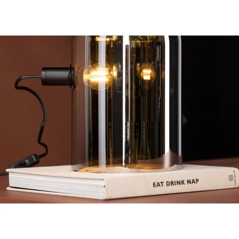 Quentin bordlampen er den perfekte tilføjelse til det moderne hjems interiør. Lampen er designet med runde former og røgfarvet glas med spejleffekt. Denne trendy lampe er nem at matche med andre interiørelementer, og den kompakte størrelse gør det muligt at placere den selv på smalle steder, som f.eks. en hylde. Med denne lampe skaber du et unikt blikfang og får samtidig en hyggelig glød.