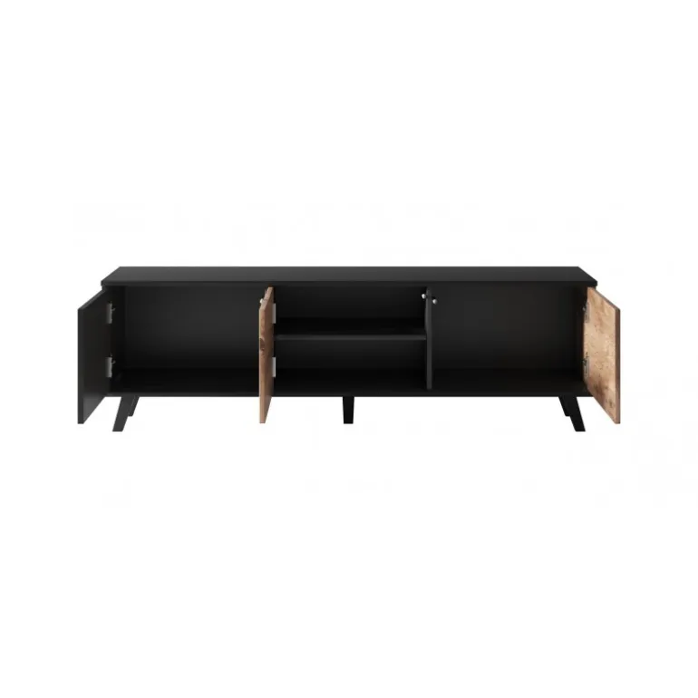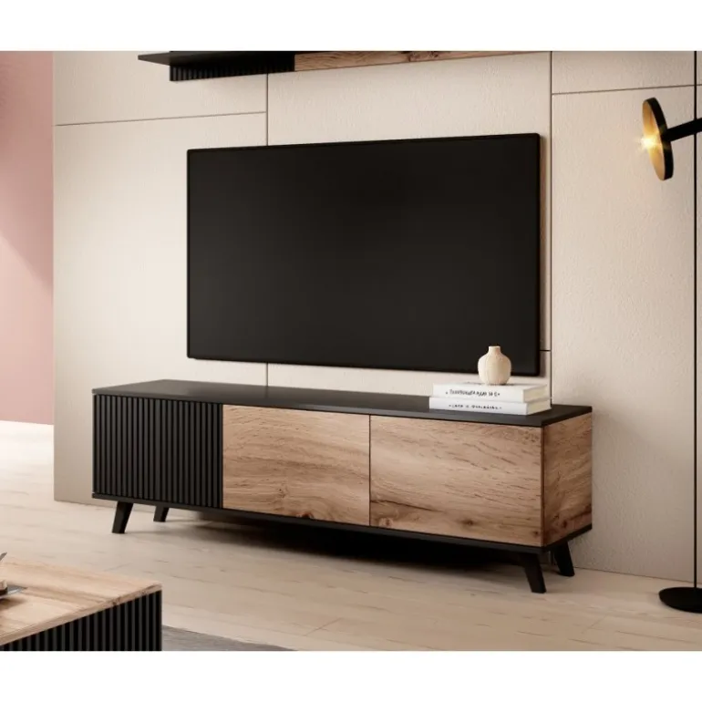 RANDOM RTV-1 tv-bord er den perfekte kombination af stil og funktionalitet. Med dimensionerne 150/40/47 cm passer den ideelt til enhver stue og tilbyder rigelig plads til dit TV og andet udstyr. Fremstillet af lamineret MDF, lamineret spånplade og polypropylen, sikrer denne stander både holdbarhed og en elegant finish i wotan eg/Sort farve. Med denne tv-bord får du ikke kun et praktisk møbel, men også et stilfuldt element, der forøger æstetikken i dit hjem.
