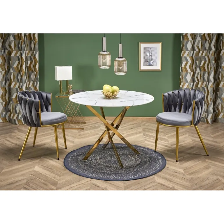 Oplev elegance og holdbarhed med RAYMOND 2 bord, der kombinerer tidløst design med moderne materialer. Dette bord har en smuk overflade i hvid marmor og ben i glitrende guld, som giver et luksuriøst touch til ethvert rum. Med dimensionerne fi100/73 cm er det perfekt til både spisestuen og stuen. RAYMOND 2 bord er fremstillet af højkvalitets glas og kromstål, hvilket sikrer langvarig brug og stilfuldt udseende.