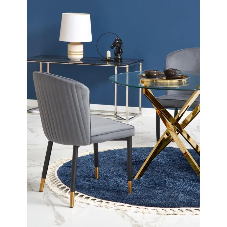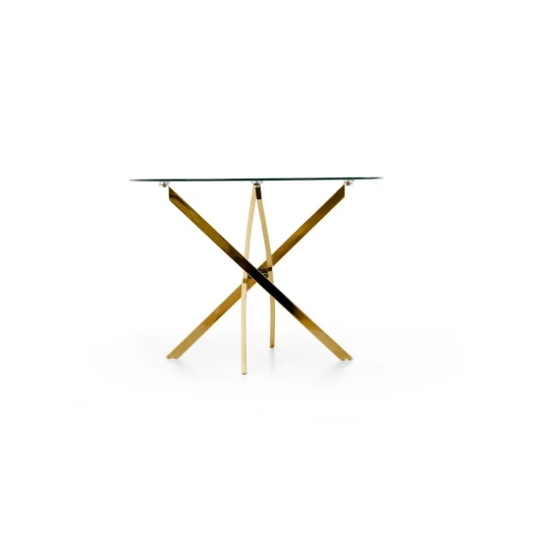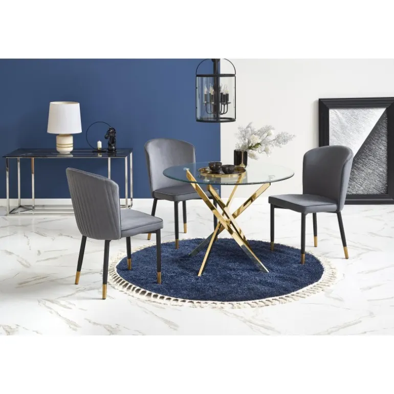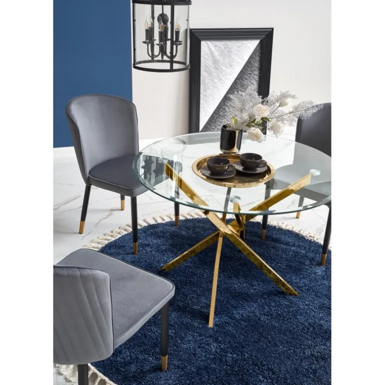 Oplev elegance og modernitet med dette RAYMOND bord. Bordpladen i glas er både stilfuld og funktionel, mens benene i guld tilføjer et luksuriøst touch til ethvert rum. Med dimensionerne fi100/73 cm passer dette bord perfekt til både små og store rum. Materialet af glas og kromstål sikrer holdbarhed og lang levetid. Dette bord kommer i to kasser og er let at samle. Perfekt til både daglig brug og særlige lejligheder.