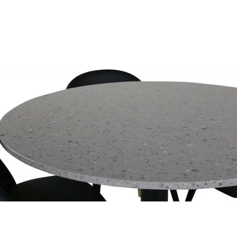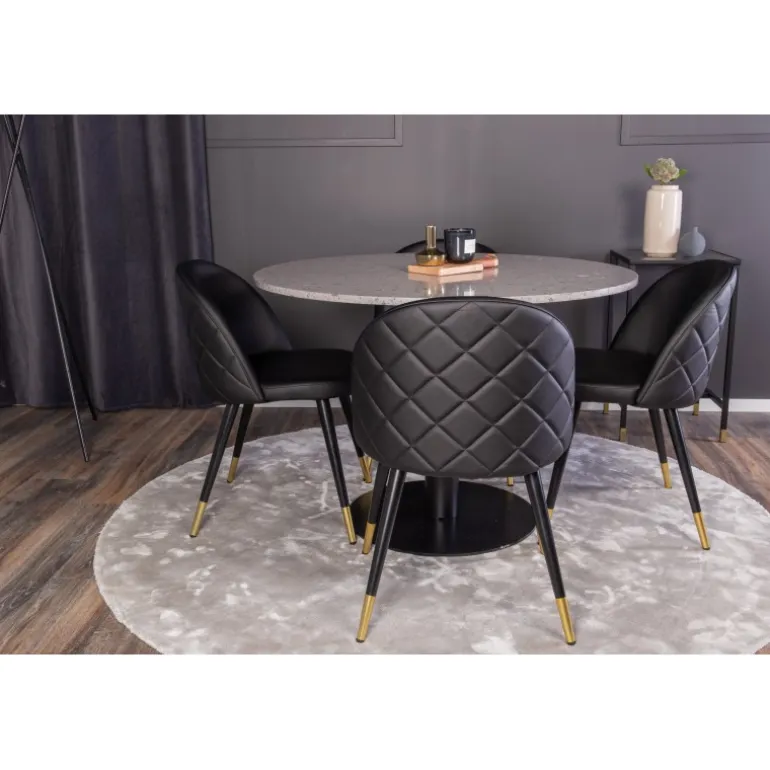 Vores moderne Razzia Rundt Spisebordssæt er en perfekt blanding af luksus og elegance, som vil gøre dit hjem til et attraktivt samlingspunkt. Sættet inkluderer en stilfuld spisebord og komfortable stole fra Velvet-serien, der tilføjer et strejf af sofistikation til enhver spisestue. Med materialer som PU, stål og terrazzo kombinerer dette sæt både holdbarhed og æstetik. Tilgængelig i farverne sort, guld og grå, passer Spisebordssættet perfekt ind i enhver moderne indretning.