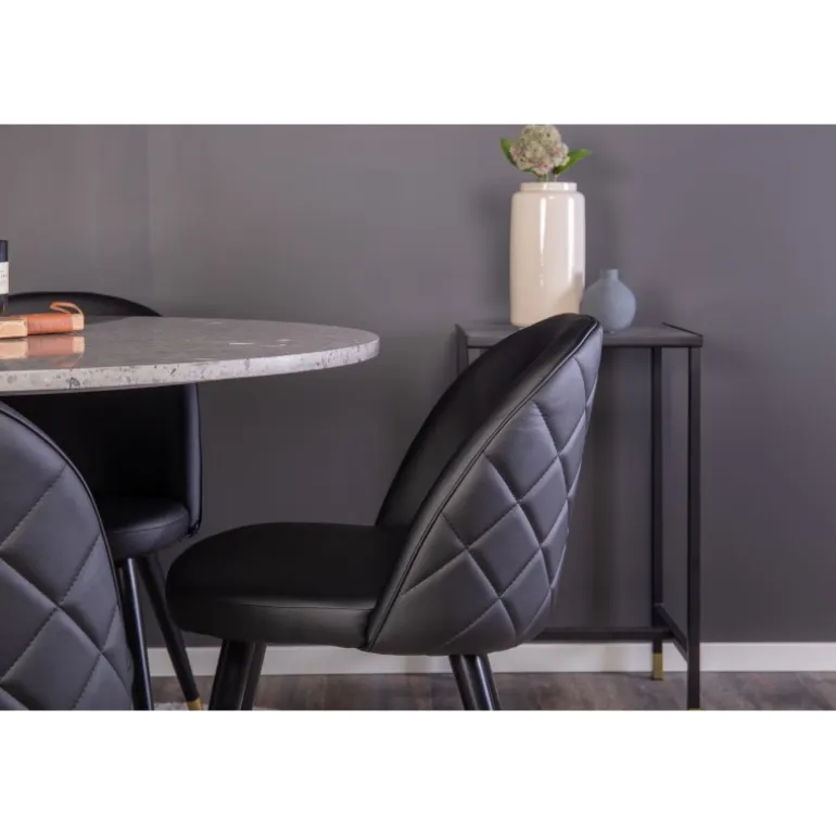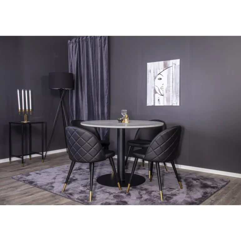 - Moderne Design: Slankt og elegant rundt spisebord med stilfulde Velvet spisestole.