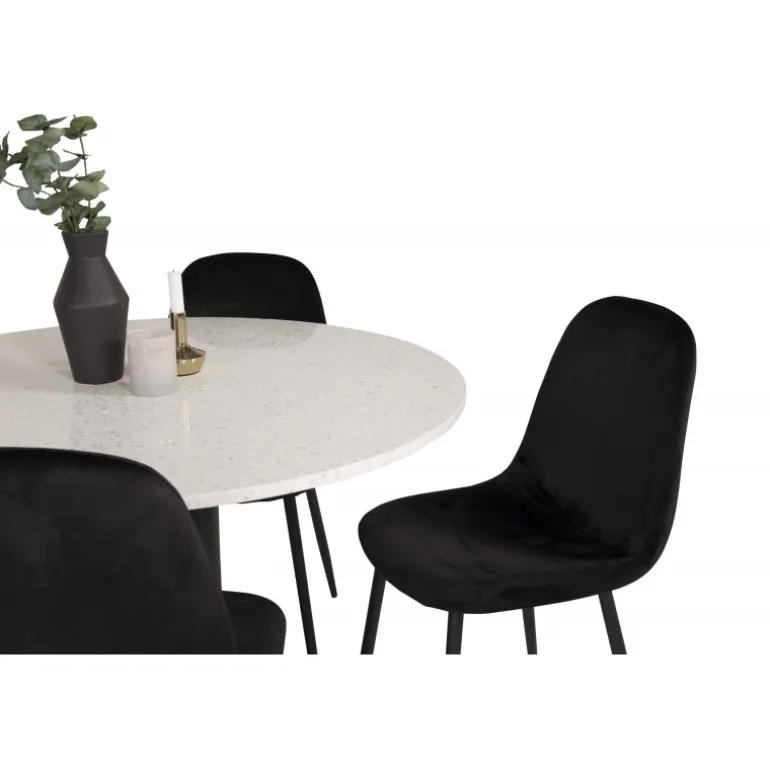 Nyd måltiderne omkring det elegante Razzia Rundt Spisebordssæt. Dette sæt inkluderer en stilfuld bordplade i terrazzo fra Razzia-serien og komfortable, bløde spisebordsstole fra Polar-serien. Ideelt til at skabe et hyggeligt og moderne spiseområde i dit hjem. Med dette sæt får du en Spisebordssæt, der er værd at længes efter!