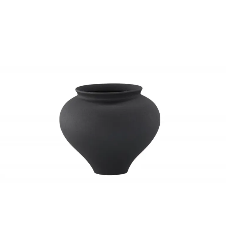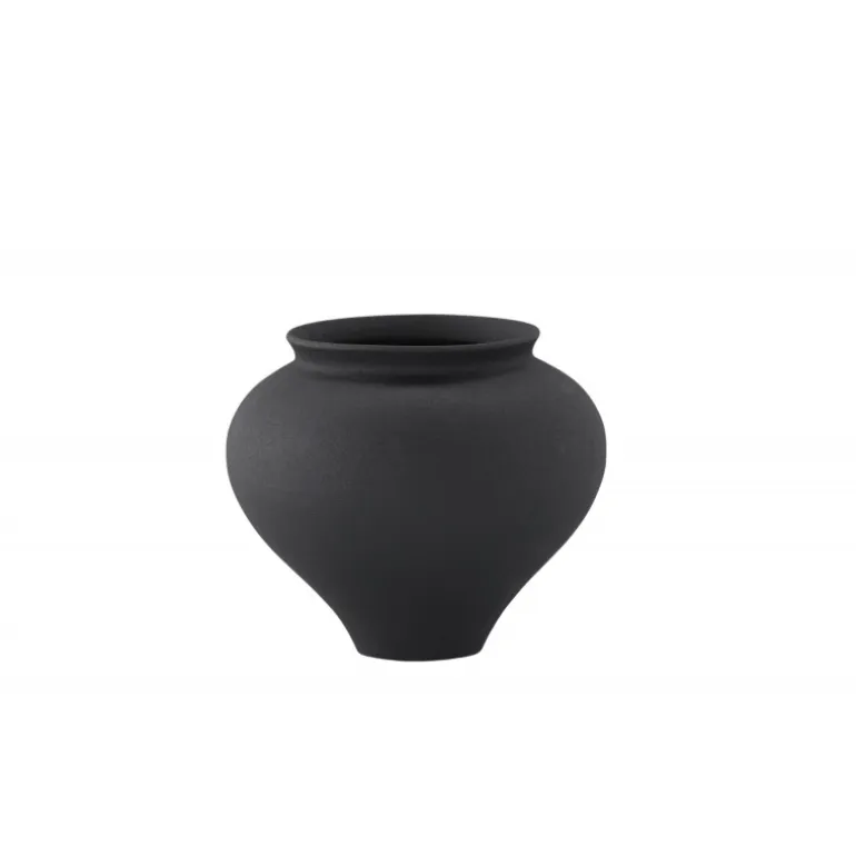 - Stilfuldt design: Elegant sort vase med rund form.
