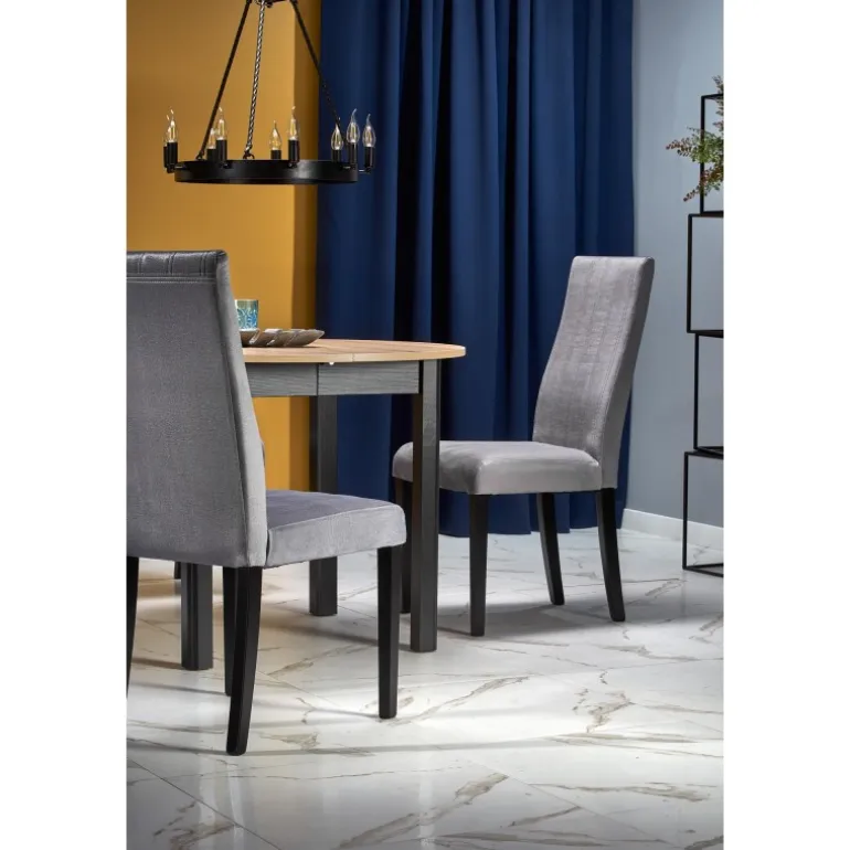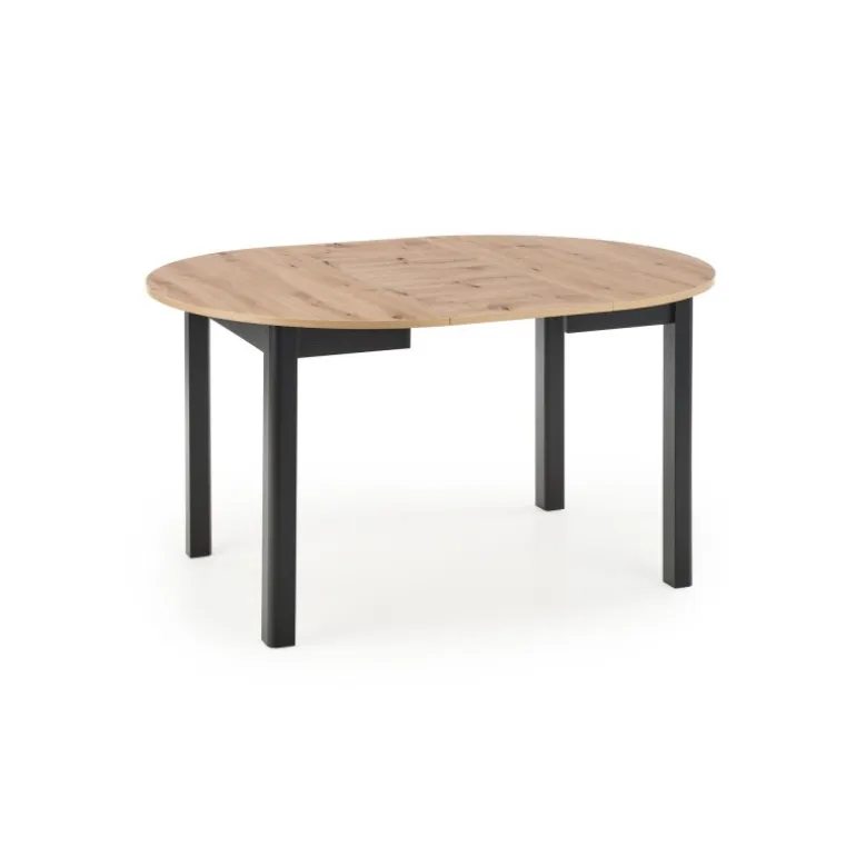 Oplev alsidigheden og elegancen med vores RINGO Spisebord med udtræk i kunstig eg / Sort. Dette alsidige og stilfulde bord er perfekt til både små og store rum, takket være dets praktiske udvidelsesfunktion. Med dimensionerne 102-142/102/76 cm er det ideelt til hverdagsbrug samt til gæstemiddage. Materialerne er af høj kvalitet med lamineret spånplade og lamineret MDF, som sikrer langvarig holdbarhed og en flot finish. Den smukke kombination af kunstig eg og Sort farve giver et moderne og sofistikeret udtryk, der passer ind i ethvert hjem.