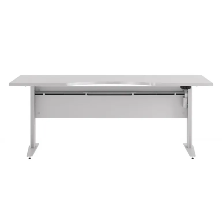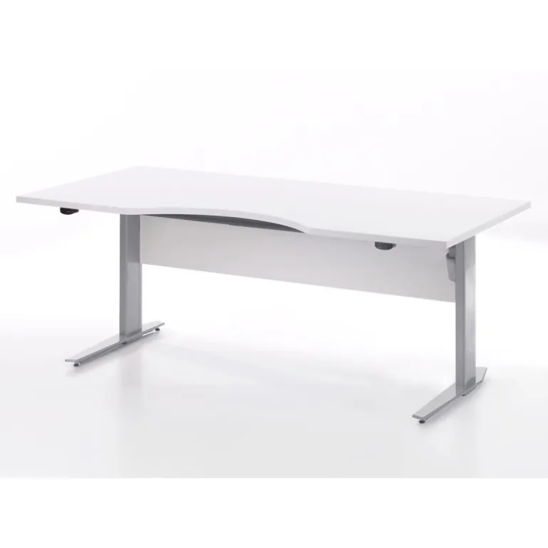 Rio hæve/sænke skrivebord med hvid MDF bordplade og hvide stålben. Kvalitet, funktionalitet og design går op i en højere enhed i dette smarte skrivebord, der tilfører kontoret en indbydende arbejdsplads.