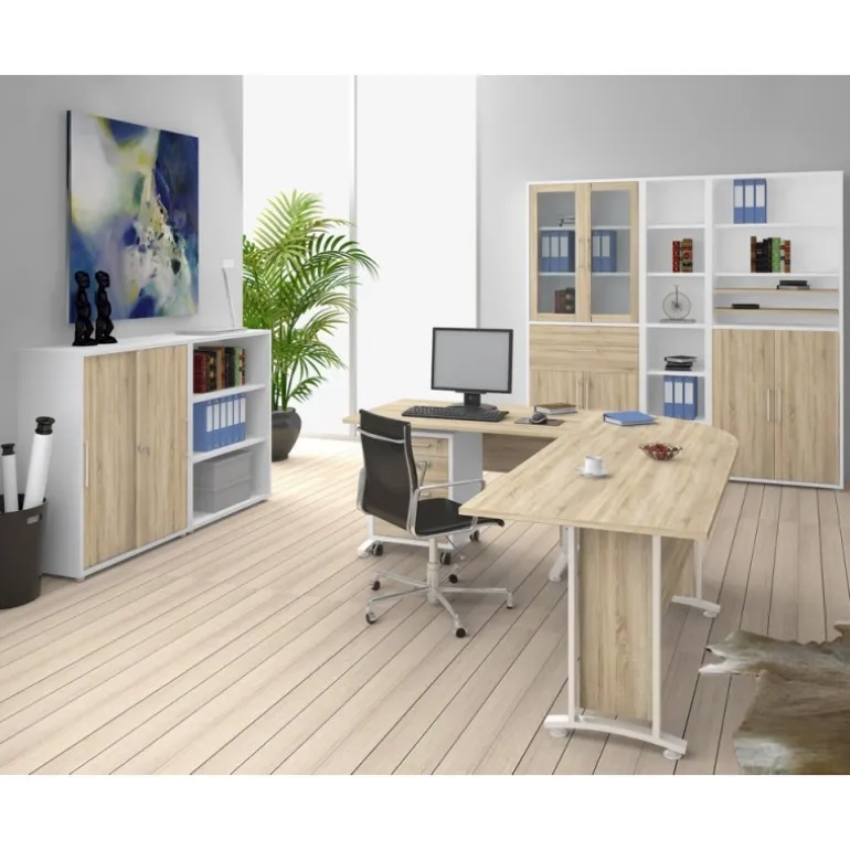 Rio reol med 2 hylder i hvid. I Rio serien findes der skriveborde, kassetter og reoler, som kan kombineres med forskellige låger, skuffer og greb. Rio er et fleksibelt system så du selv kan sammensætte det efter dit behov.