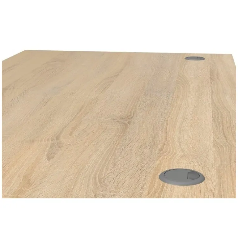 Rio skrivebord i Eg struktur med sølvgrå stålben, der let kan justeres, så bordet kommer til at stå helt lige. Ideelt skrivebord til hjemmekontoret. Skuffesektion med hjul og lås medfølger.