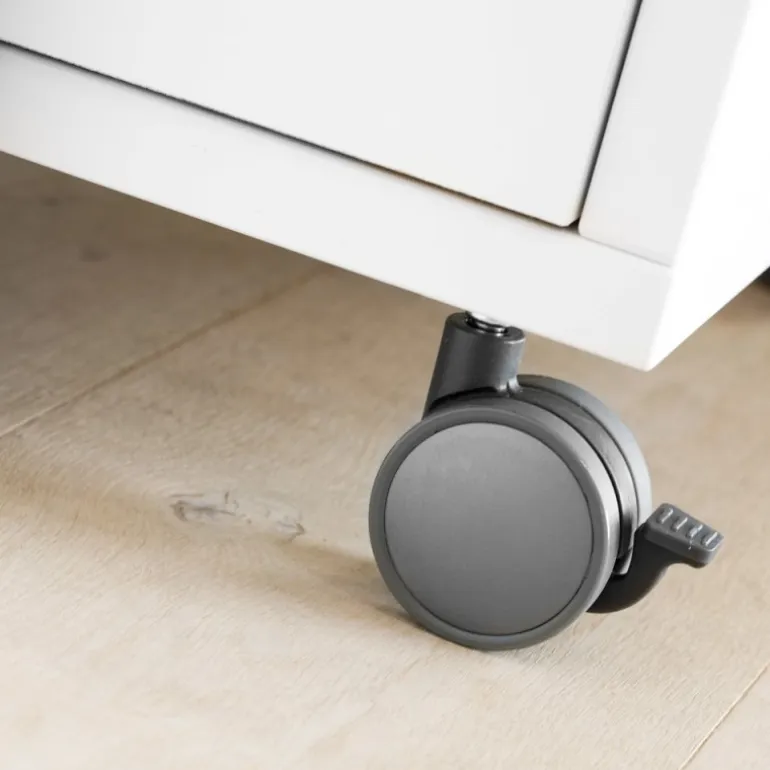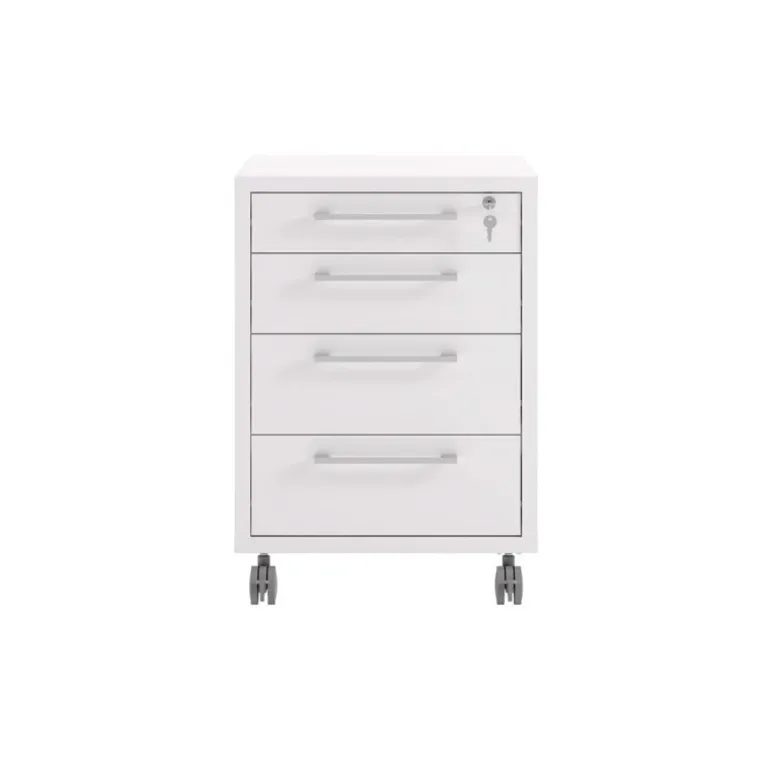 Rio skuffesektion i hvid, på hjul og med lås. Hjul med stop funktion. I Rio serien findes der skriveborde, kassetter og reoler, som kan kombineres med forskellige låger, skuffer og greb. Rio er et fleksibelt system så du selv kan sammensætte det efter dit behov.