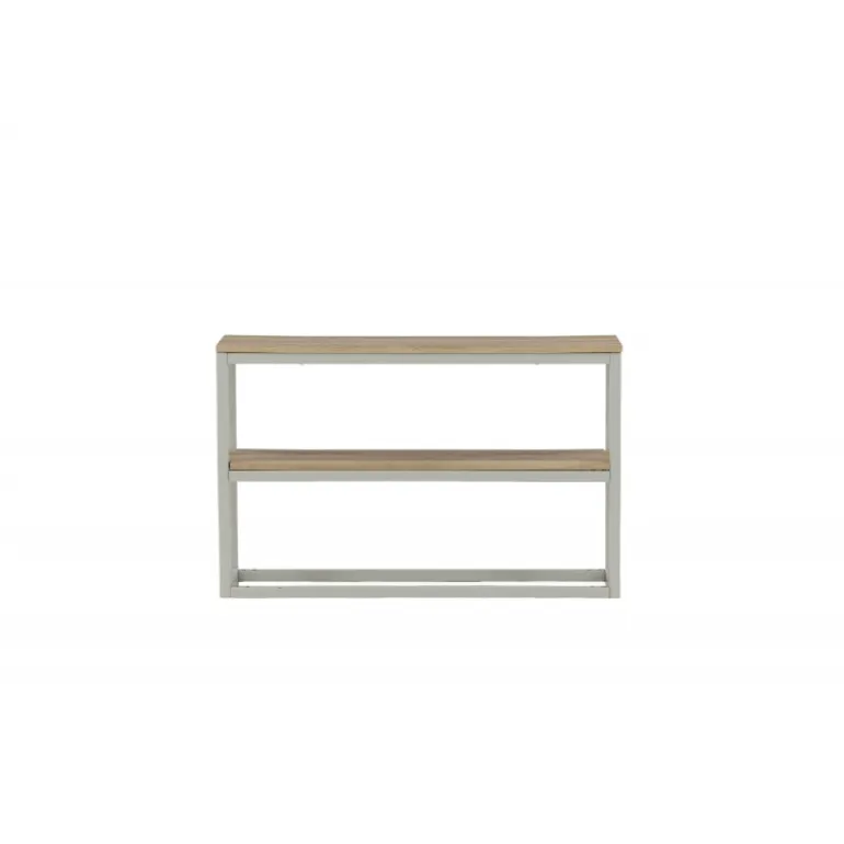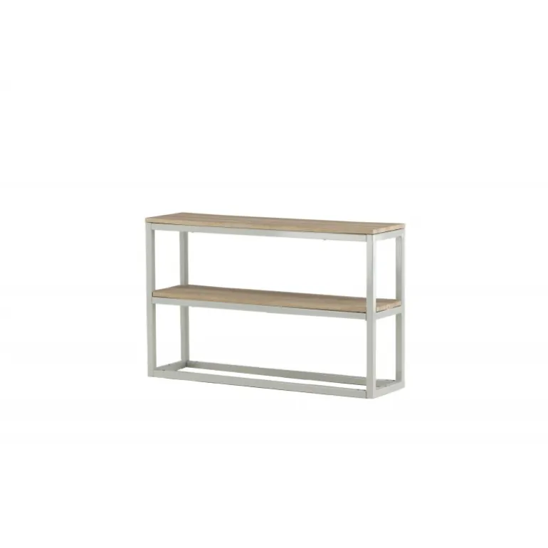 RISE, et elegant sidebord, der vil løfte din indretning til næste niveau! Brugsmulighederne er mange, og sidebordet fungerer perfekt som både en flot indretningsdetalje og til nem opbevaring. Der er to smarte hylder i naturfarvet MDF med askepapirlaminat, og rammen er i stilfuldt hvidt metal – en tidløs farvekombination, der gør bordet let at matche med resten af din indretning. Placer det i soveværelset, gangen eller stuen for en smart og stilfuld indretning! Dimensioner: 110x30x70 cm. Plejeråd: MDF-plader, der er malede eller lakerede, er følsomme over for ridser og skader. Vær derfor forsigtig med pladerne for at undgå dette. Overflader malet med lak med farvepigment eller maling har en pigmentering, der giver en ikke-dækkende gennemsigtig overflade.