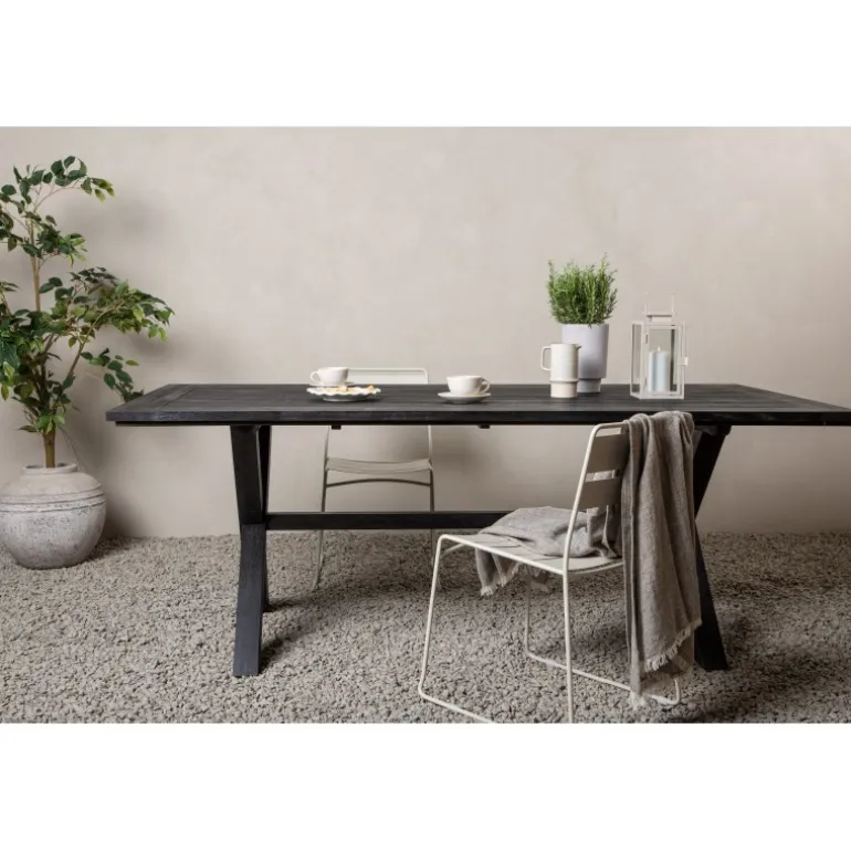 Rives er et af vores smukke spiseborde i sortmalet akacietræ. Bordets rustikke design med en stilfuld krydsformet ramme giver hele terrassen en vidunderlig atmosfære. Inviter venner og familie til mange dejlige øjeblikke sammen, her sidder du lige så godt som komfortabelt. Under vores vedligeholdelsesråd kan du læse mere om, hvordan du bedst plejer dit akaciebord. Vedligeholdelsesråd: For at dine udendørsmøbler i akacietræ/hårdttræ bevarer deres finish, bør de olieres regelmæssigt. Da træet i sig selv ikke er så fedtholdigt, skal det olieres lidt nu og da, selv i sæsonen. Nyindkøbte møbler bør mættes med olie, påfør flere lag i træk, så træet absorberer så meget olie som muligt. Aftør overskydende olie.