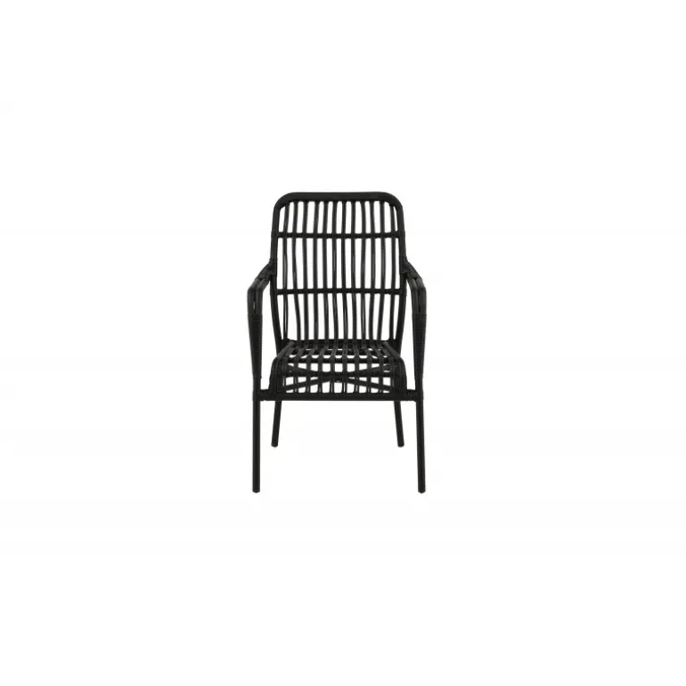 Rizal Lounge Stolen fra Rizal serien vil tilføje et moderne præg som blikfang i dit udendørs rum! Denne stol har en afslappende ramme konstruktion med integrerede armlæn i sort aluminium og detaljer i flettet rattan. Placer den i loungehjørnet eller alene som en stil-ikon – kun fantasien sætter grænser!