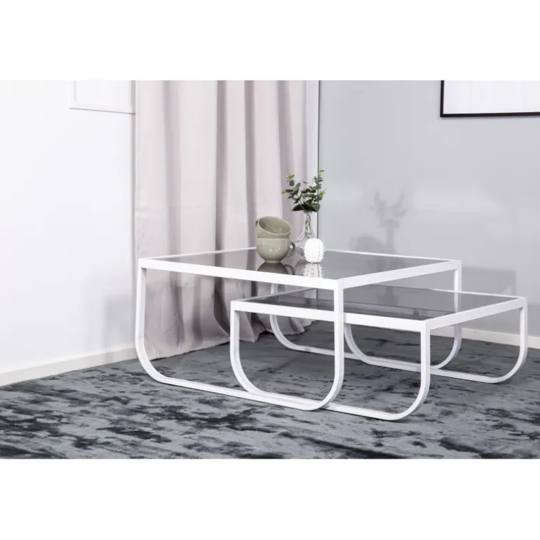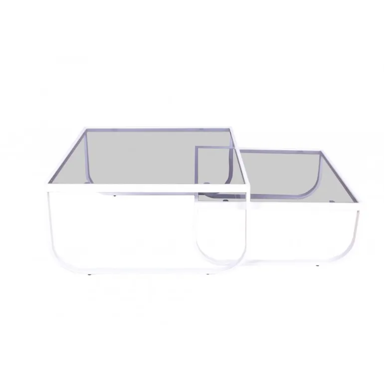 Opgrader din stue med dette elegante Rocker Sofaborde Sæt af 2. Med en kombination af hvidt stål og grå røget glas er dette moderne sæt både stilfuldt og funktionelt. Perfekt til enhver indretning, disse borde er designet til at imponere med deres slanke linjer og holdbare materialer. Rocker sofaborde er ideelle til opbevaring og visning af dine yndlingsgenstande, mens de tilføjer et sofistikeret touch til dit hjem.