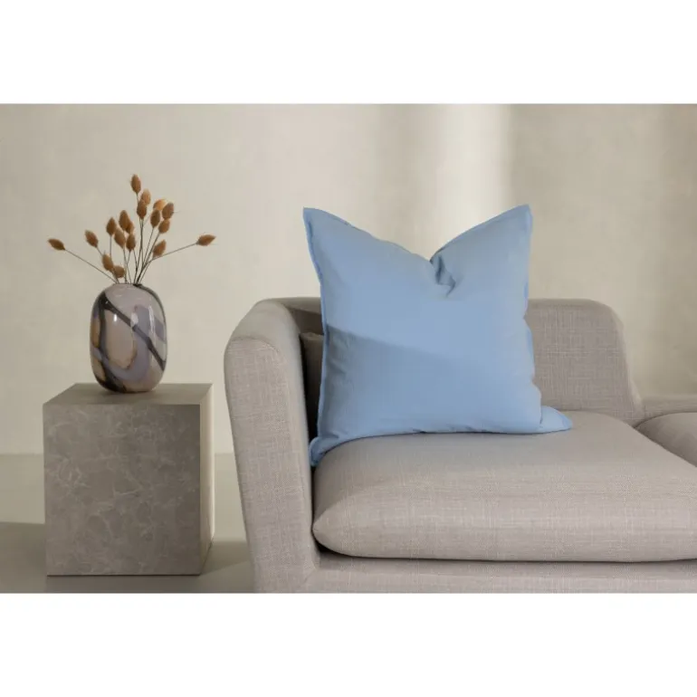 En lyseblå pudevår er helt i tråd med de nuværende trends – her i lækkert bomuldsstof! Ronja-serien tilbyder pudevår i flere forskellige farver og størrelser, der er nemme at variere og kombinere med andre pudevår. Pudevåret har en diskret lynlås på bagsiden og en paspoalkant i samme stof. Følg vores vedligeholdelsesråd, så du nemt kan tage dig af eventuelle pletter og få en pude, der holder over tid!