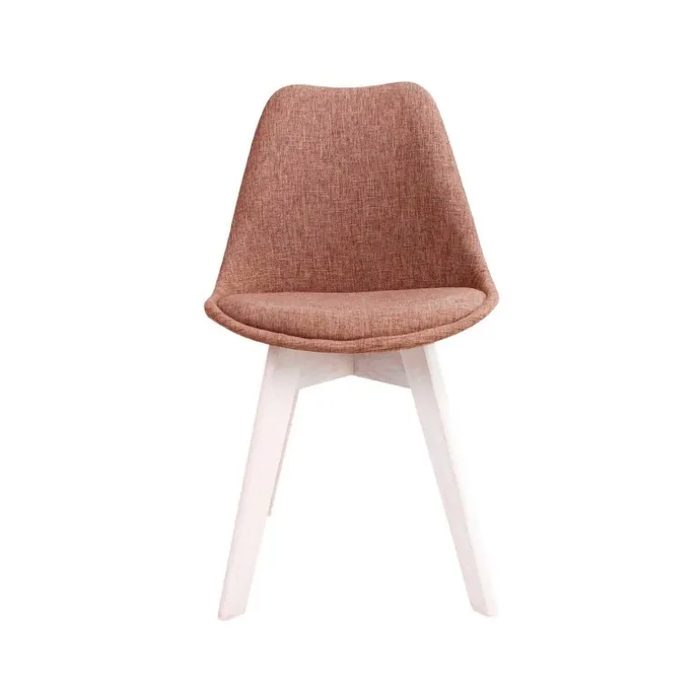 Rosa skalstol med fuld polstret sæde og ben i hvid olieret eg. Benene har runde kanter, og giver stolen et rigtig flot udtryk