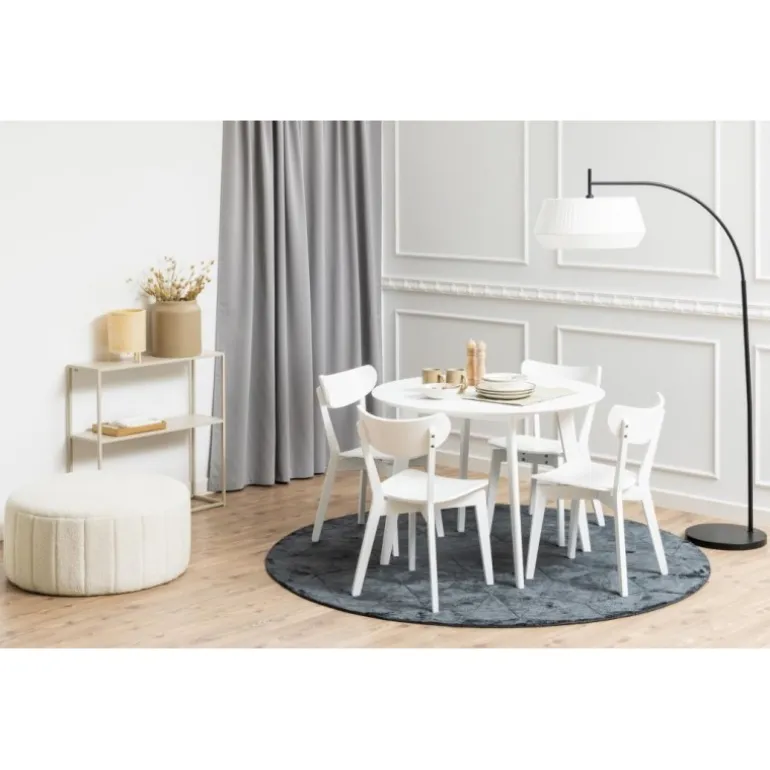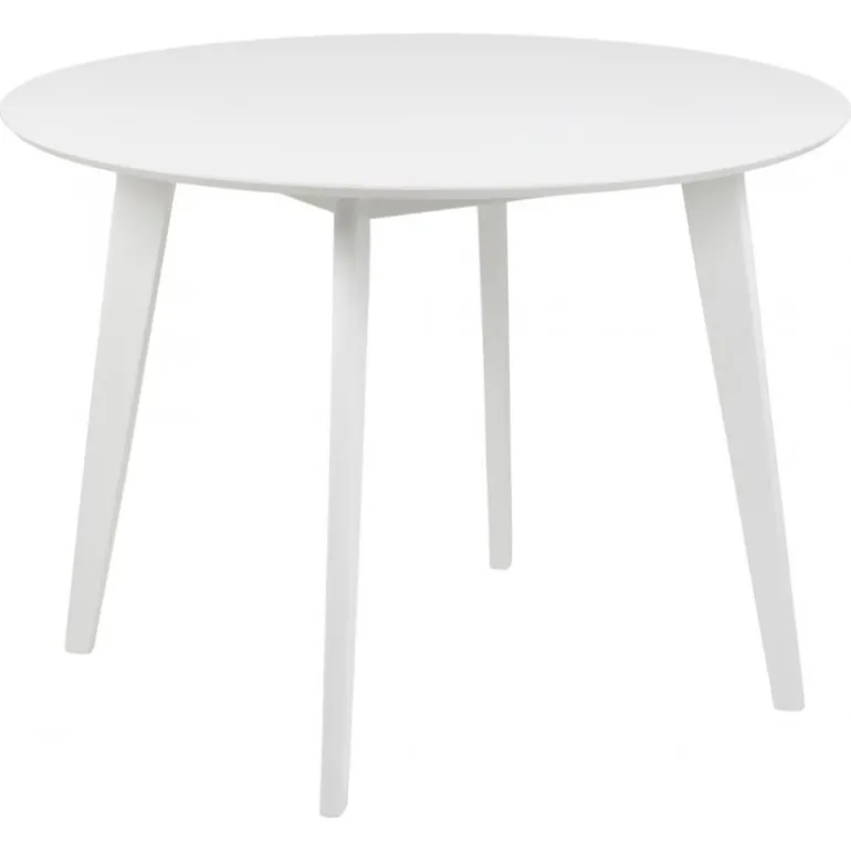 Roxby spisebord bordplade MDF mat hvid, stel gummitræ, mat hvid Ø:105 H:76 cm