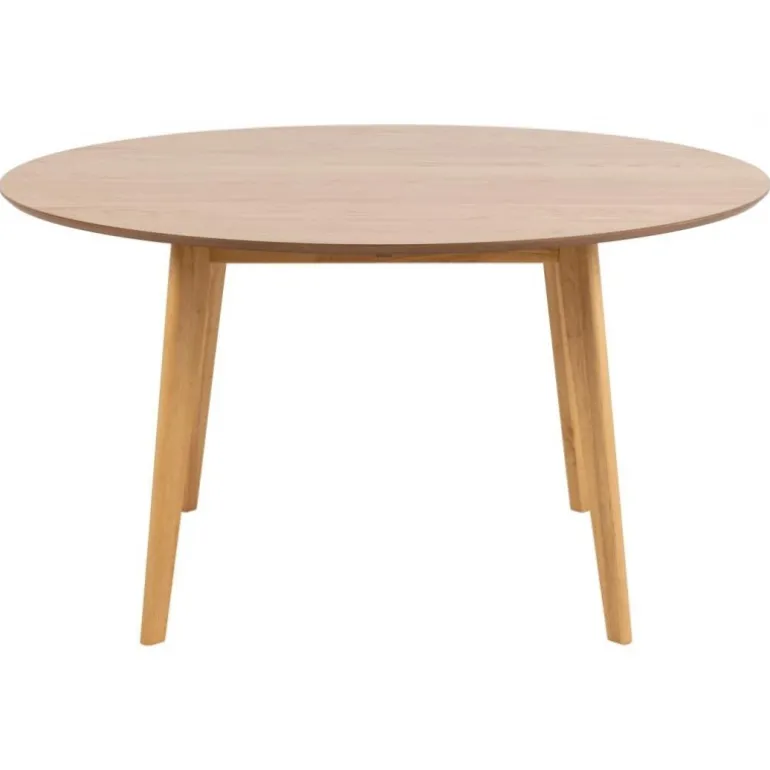 Roxby spisebord bordplade finer eg, lak, stel gummitræ, egebejdset Ø:140 H:76 cm