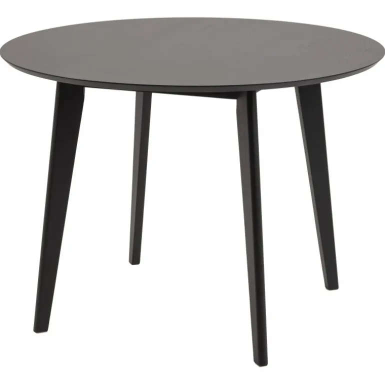Roxby spisebord bordplade finer eg sortbejdset, lak, stel gummitræ, sortmalet Ø:105 H:76 cm