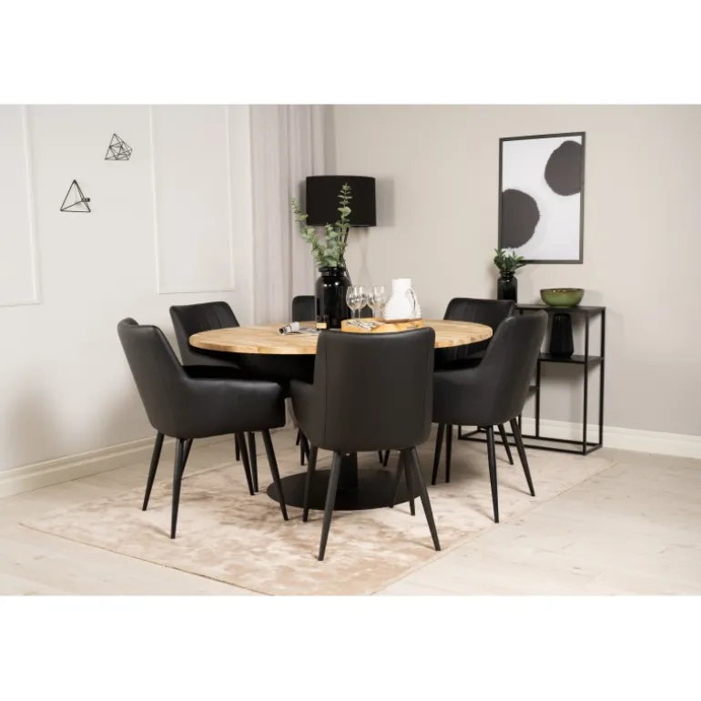 Moderne og hyggeligt! Spisebordet Cirebon sammen med komfortable spisebordsstole giver dig et hjemligt madområde at længes efter. Stolene er robuste og godt polstrede – her sidder du gerne i lang tid og nyder godt selskab med venner!