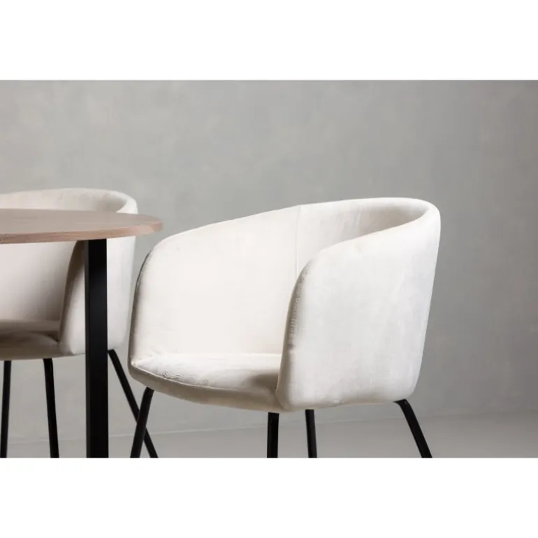 - Spisestole Berit med polstret design og beige velourstof.