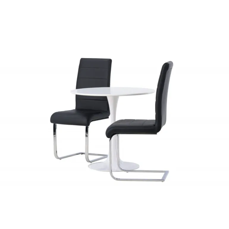 - Holdbarhed: Bordpladen i MDF og stolenes stel i forkromet metal sikrer lang levetid.
