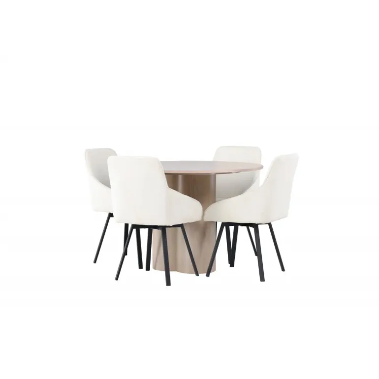 - Praktiske mål: Bord diameter 110 cm, stole dimensioner 60x88x55 cm.